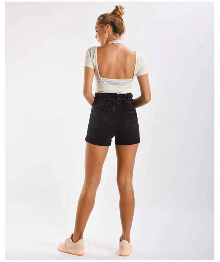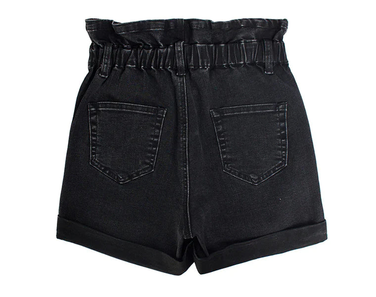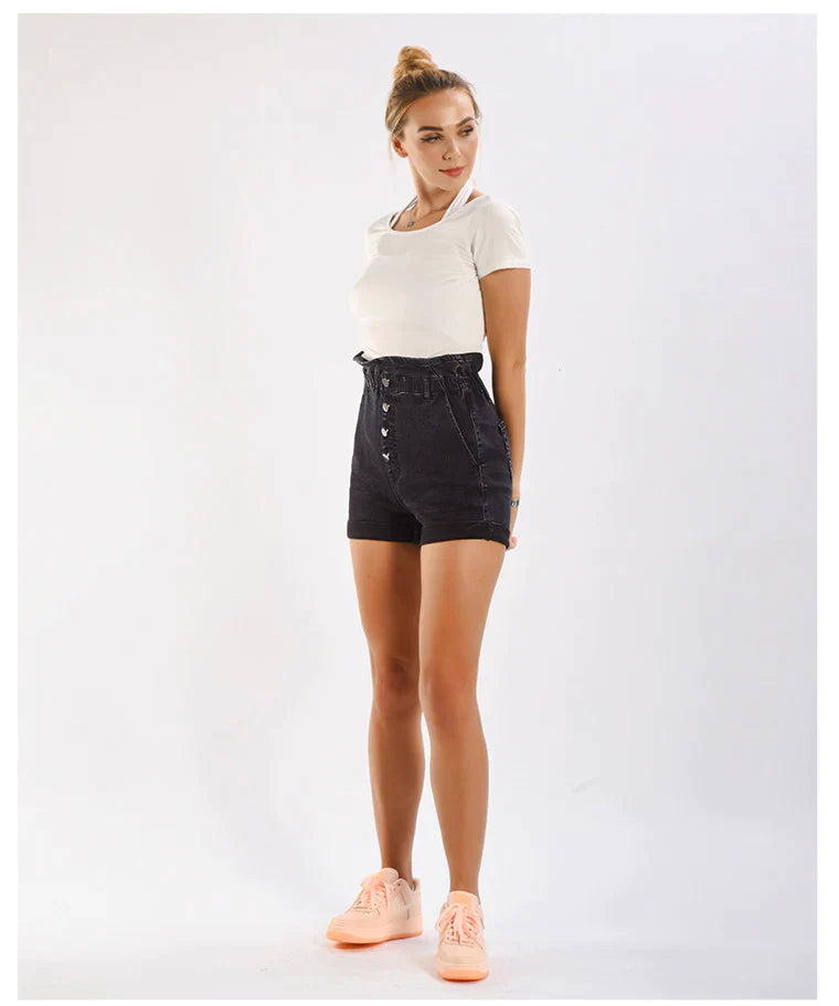 Merge comfort with contemporary fashion in our High-Waisted Black Denim Shorts. The 100% cotton lining ensures you'll be cozy all day while the dark denim with ground white accents assures you'll also be effortlessly stylish. Functional yet trendy zippers and buttons complete the look, making these wide-legged shorts a must-have for any fashion-forward individual.