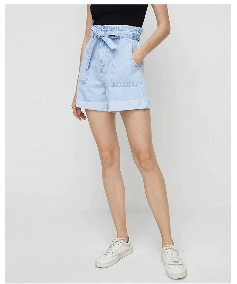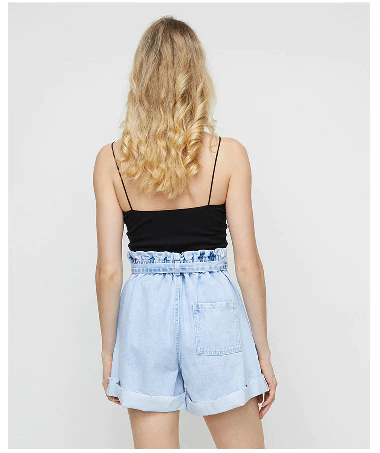 Reach new heights of fashion with these high-waisted, light blue beauties. The wide-leg style offers a flattering silhouette, and the elastic waistband ensures a snug fit. Stylish flanging and functional zippers and buttons complete the look. Don't miss out!