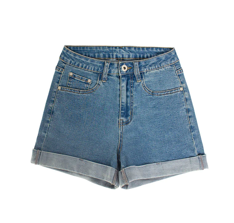 Meet your new go-to for comfort and style: our Flanged High Waist Shorts Jeans. Created in a relaxed straight cut, these light blue wonders boast an all-cotton composition, providing unparalleled comfort all day long. Zipper convenience and elastic adaptability make them a must-have!