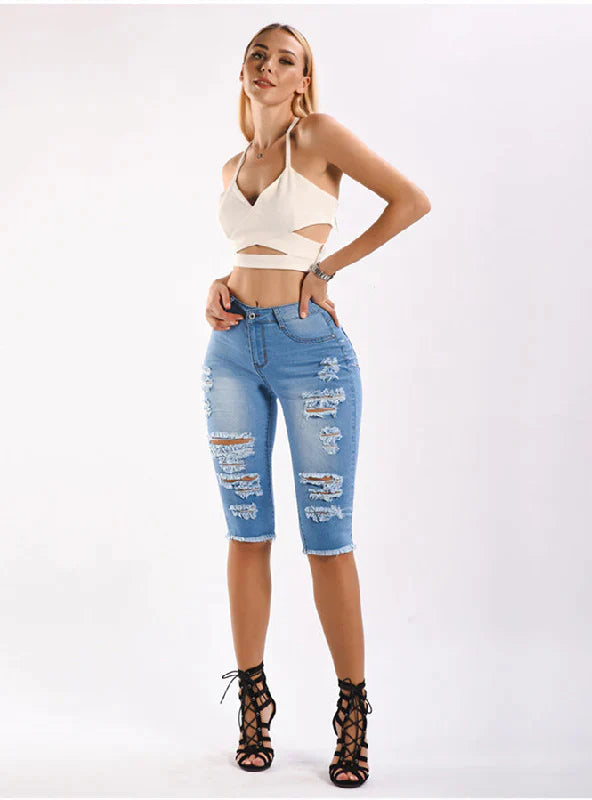 Take your gym style to the streets with these Stretch Holes Short Jeans. The breathable cotton ensures all-day comfort, while the dark denim and edgy holes make for a trendy ensemble. From workout to hangout, you'll be setting trends wherever you go.