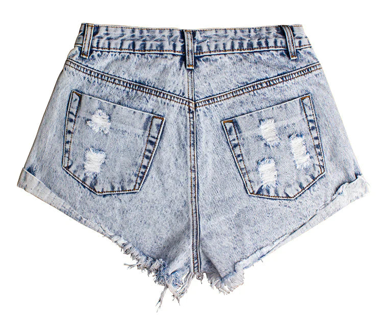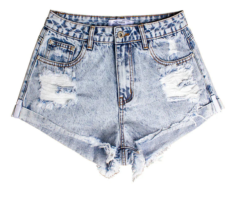 Designed for the free-spirited fashionista, these shorts embody comfort without sacrificing style. The middle waist offers a flattering fit, while the hand-worn details and flanged edges echo a sense of unrestrained freedom and flair.Every pair of these wide-leg, middle-waisted shorts is a testament to skilled craftsmanship. From the carefully applied whitening wash to the hand-worn details and flanged edges, these are not just clothes—they're wearable art.