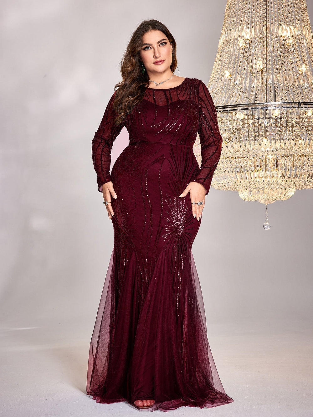 Plus Size Dress Long Sleeve round Neck Slim Fit Fishtail Skirt Bridesmaid Cocktail Evening Dress for Toasting Elegant