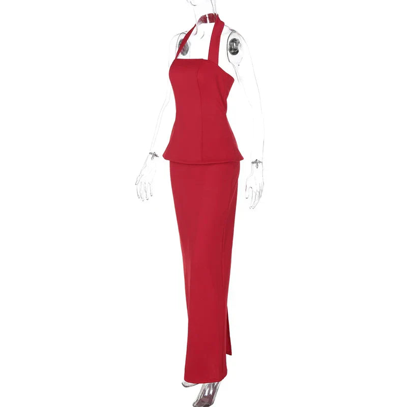 Square Collar Halter Top and Long Skirt Two-Piece Set