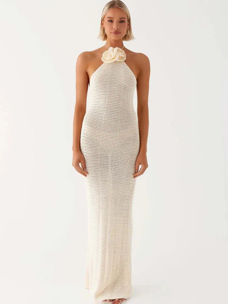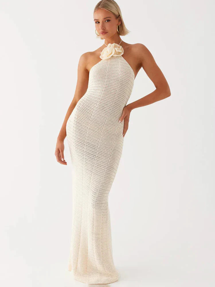Knitted Crochet Slim Halter Beachwear Cover-Up Dress