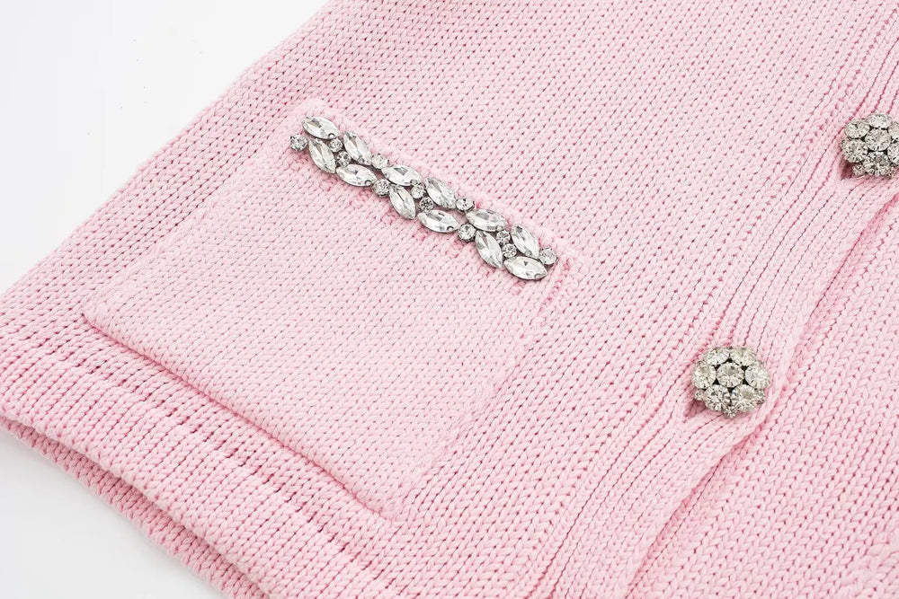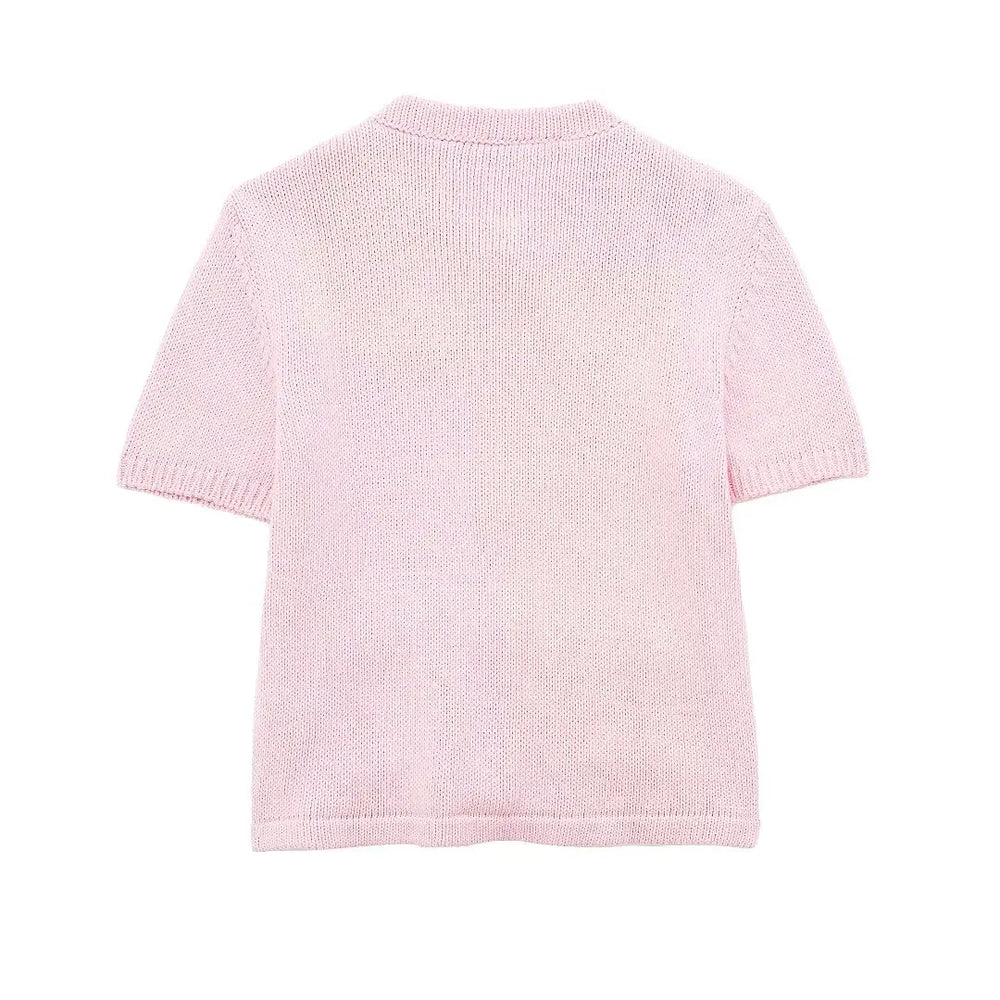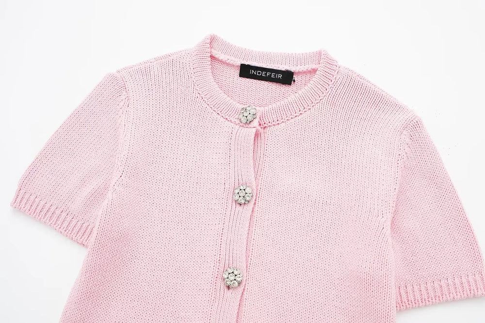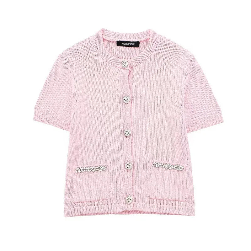 Women's Pink Short Sleeve Rhinestone Cardigan