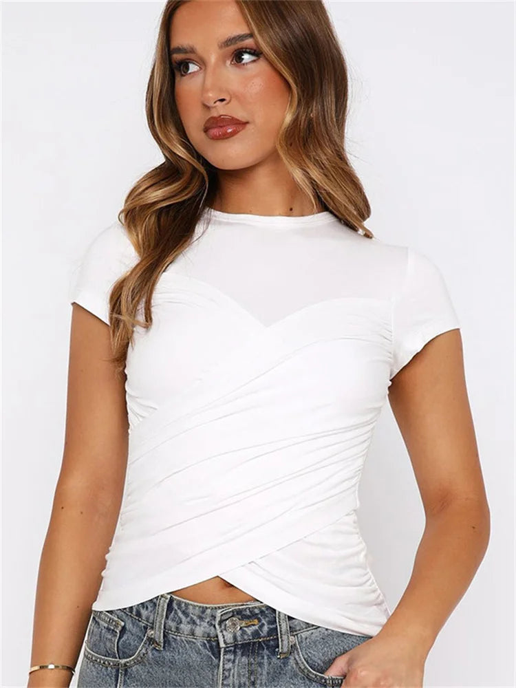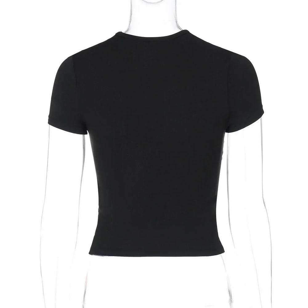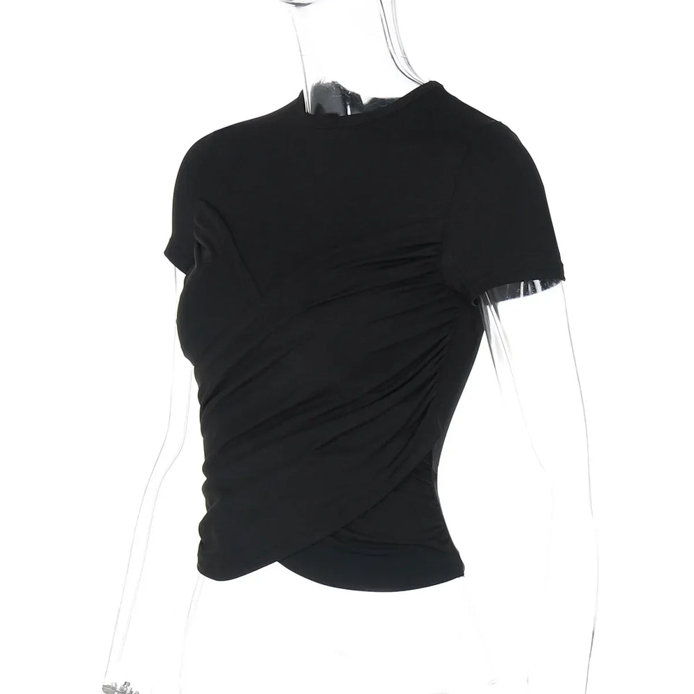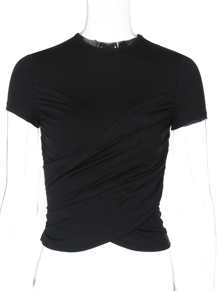 Black Pleated Bandage Cropped T-Shirt Y2K Streetwear