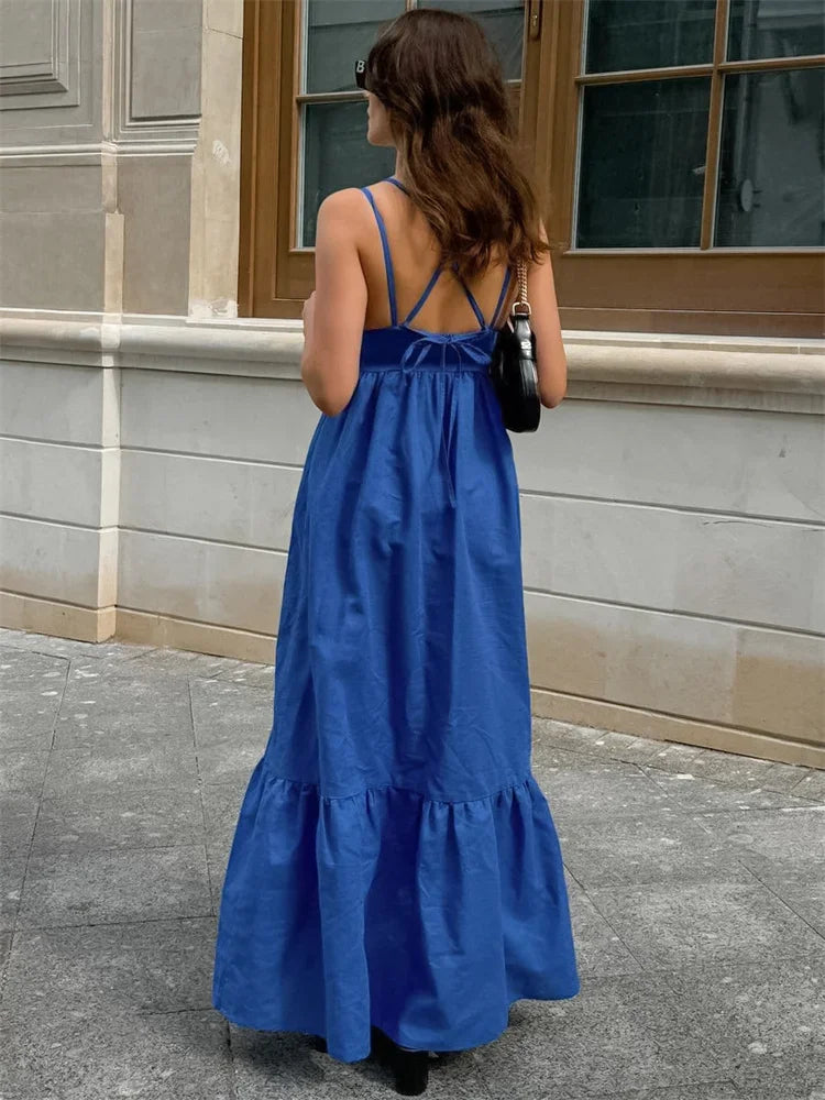 Women's Patchwork Sleeveless Solid Maxi Dress