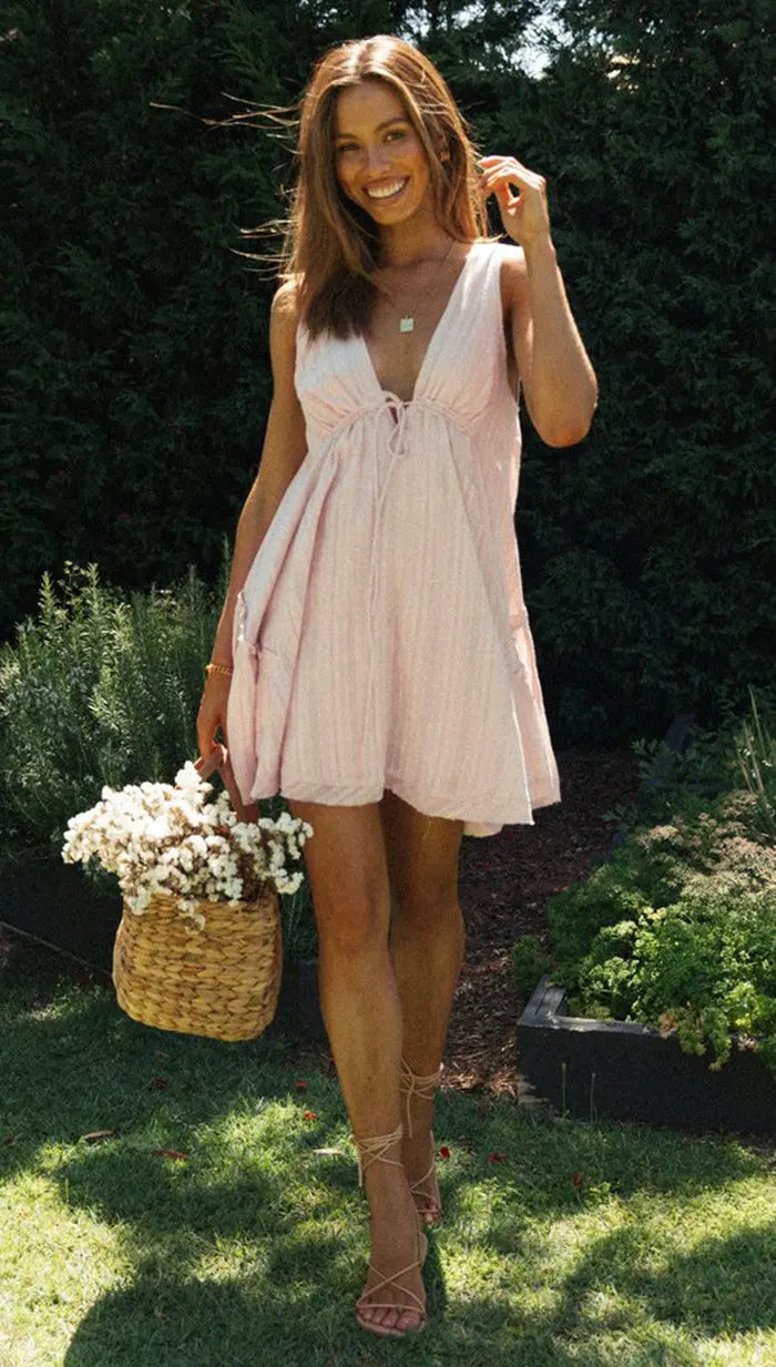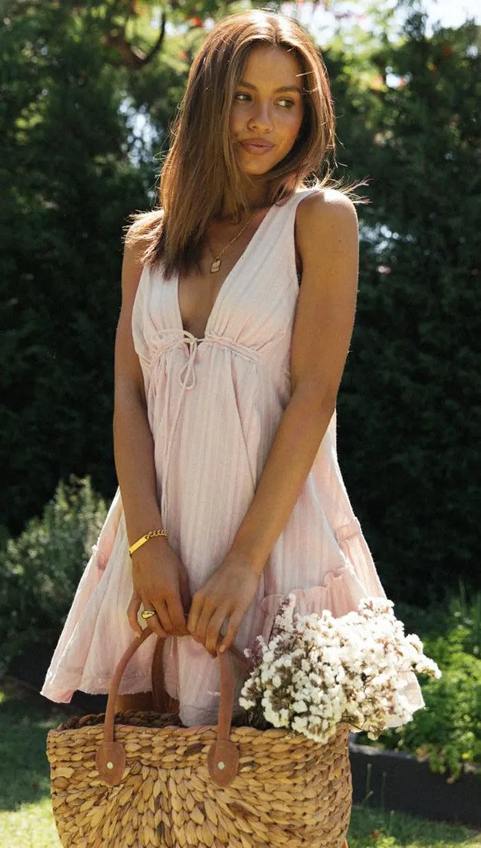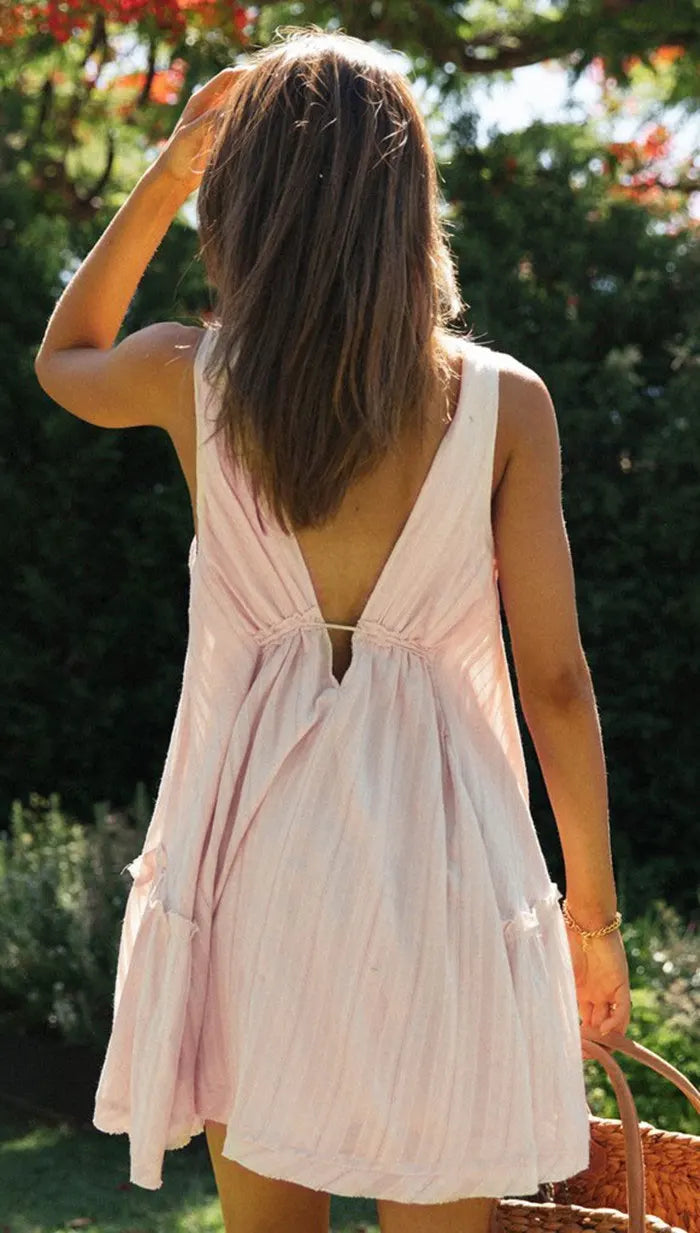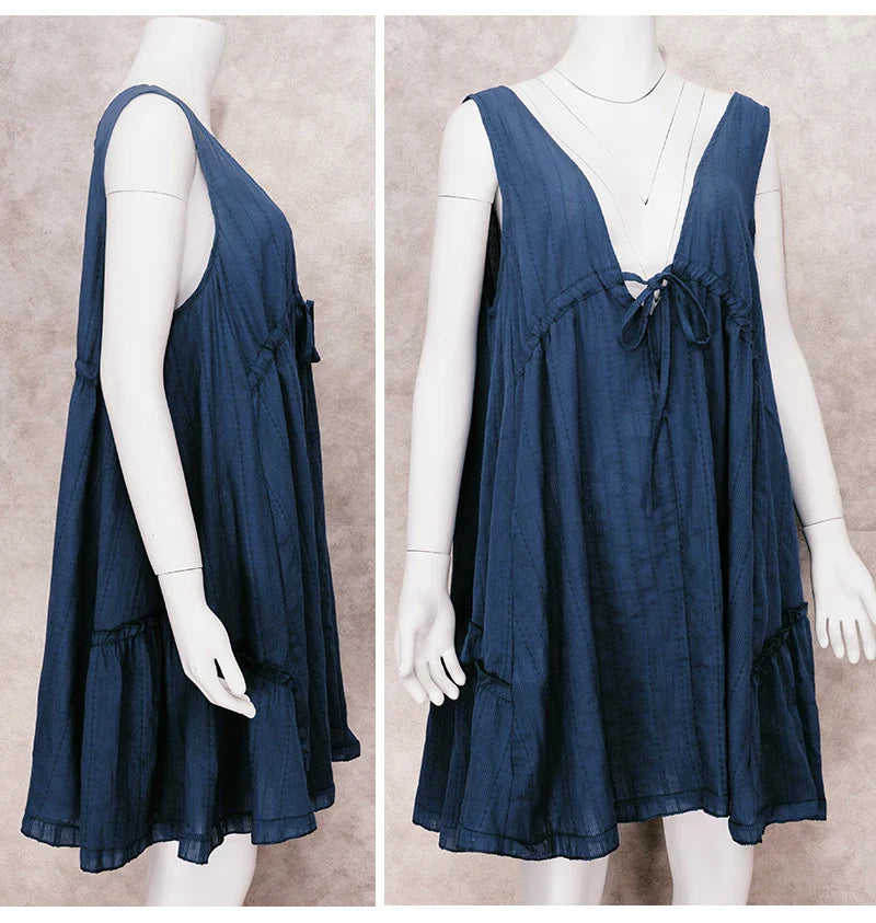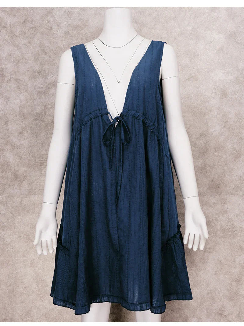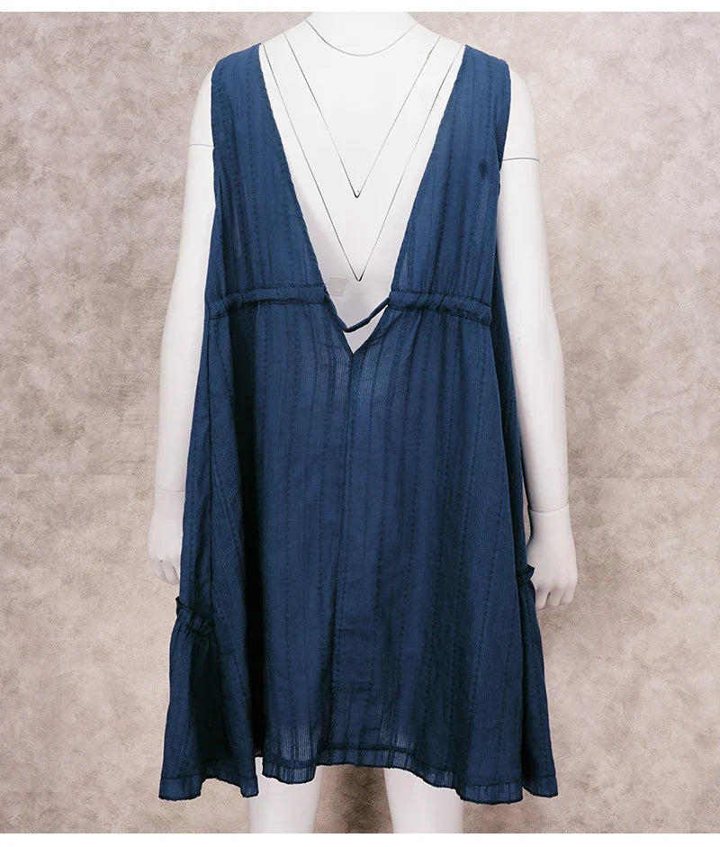 Plunging Neck Cotton Tunic Beach Cover-Up