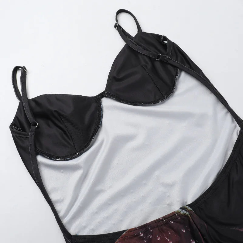 Printed Spaghetti Strap Backless Maxi Party Dress