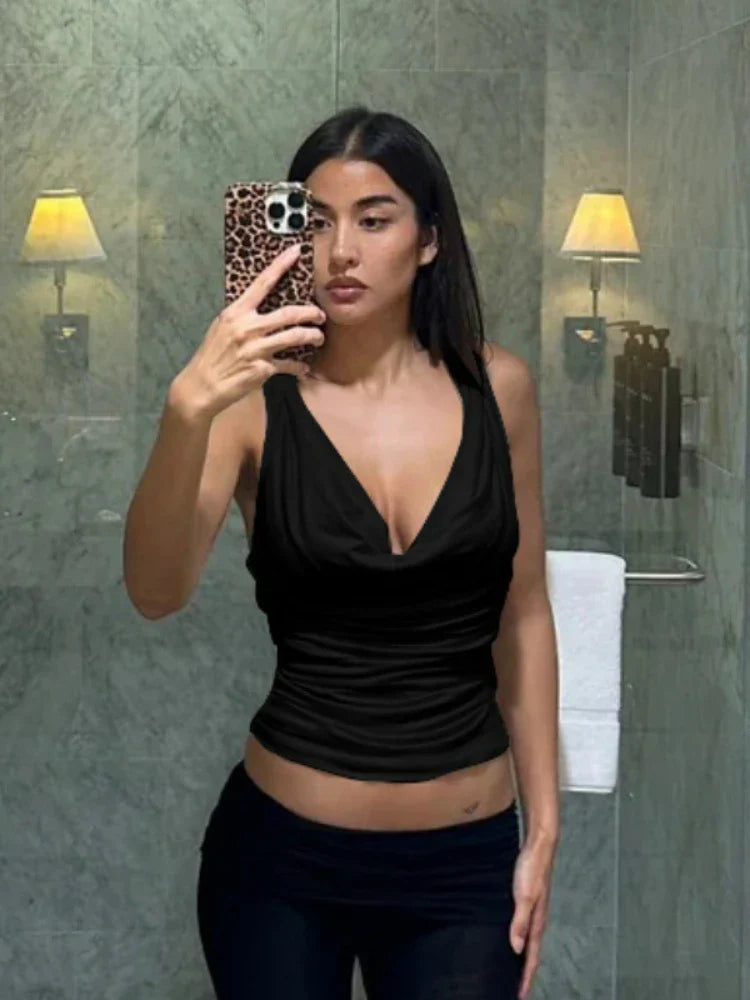 Twisted Hollow Out Backless V Neck Tank Top Women