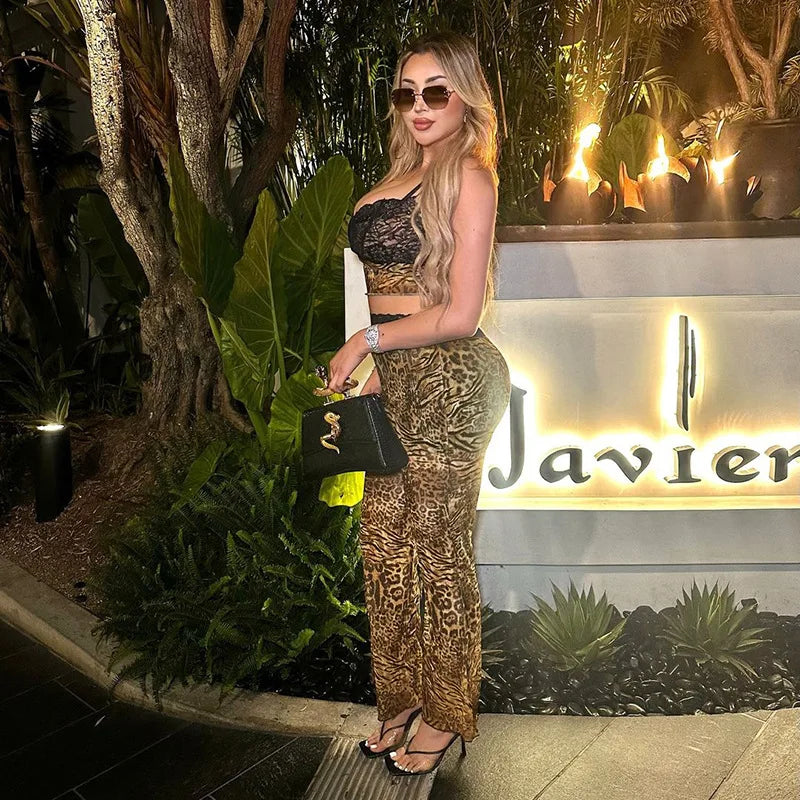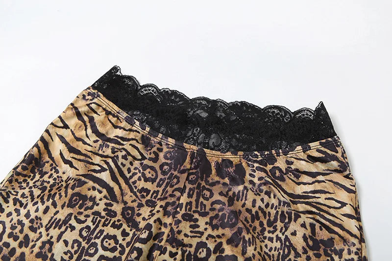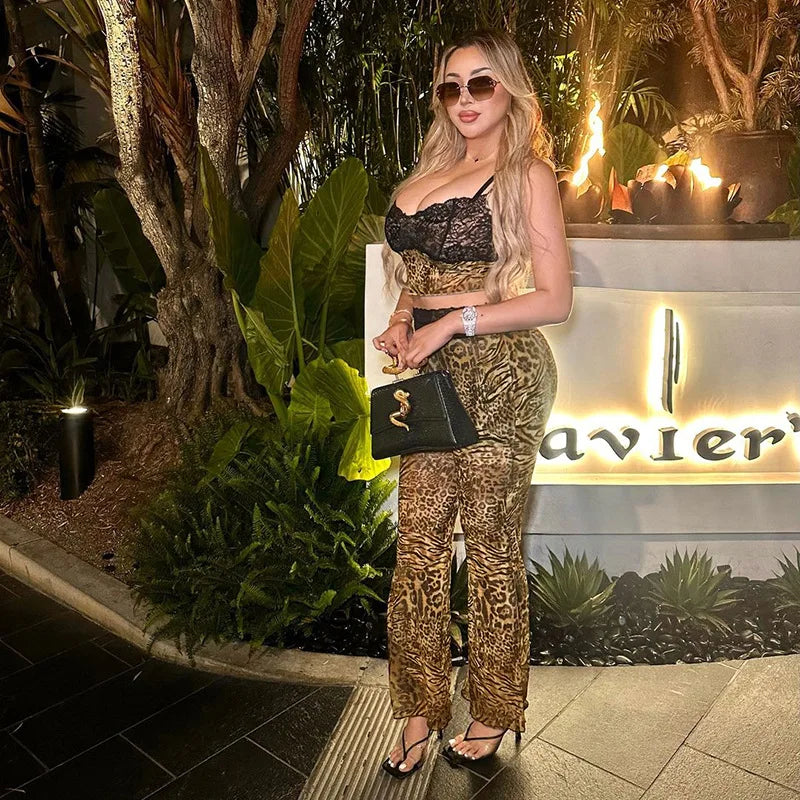 Leopard Print Two-Piece Cami Flare Pantsuit