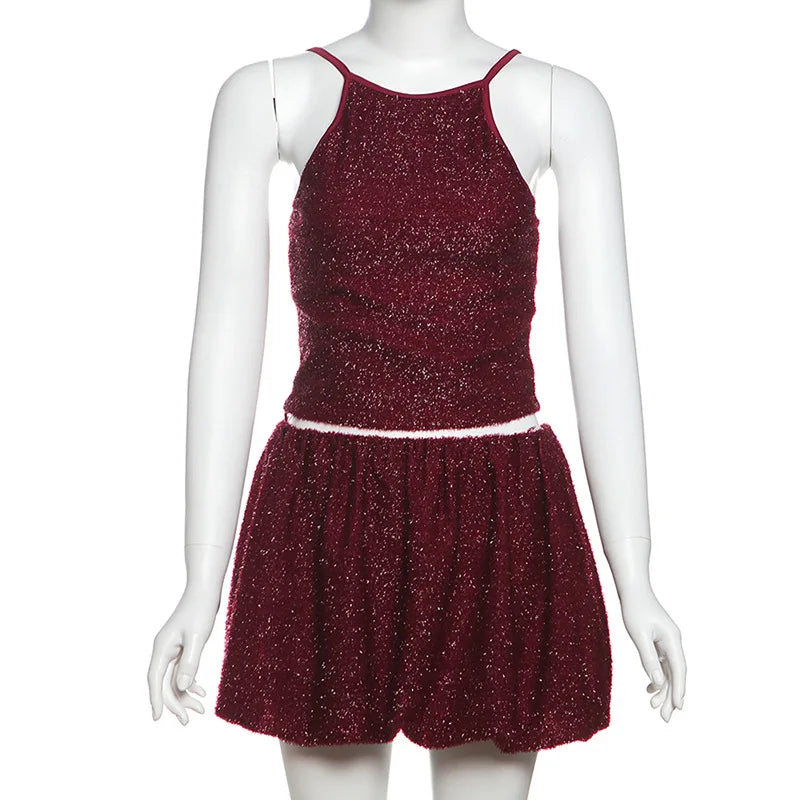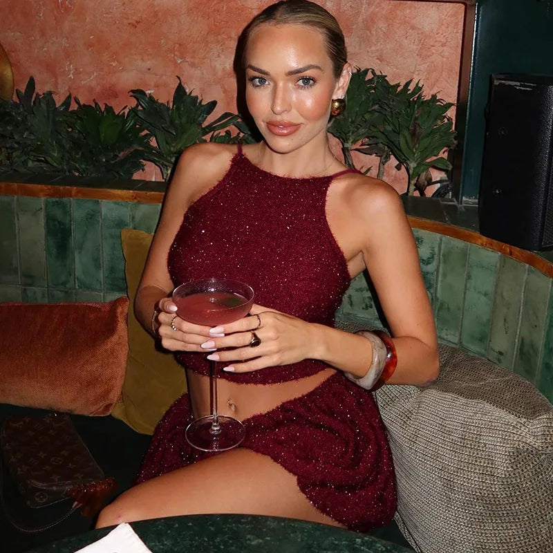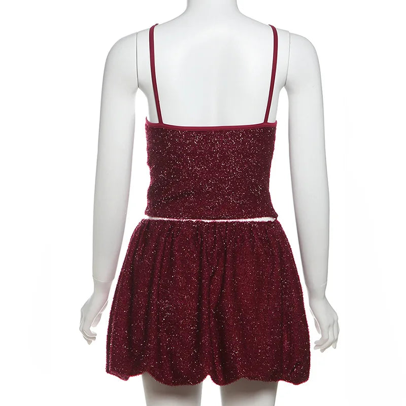 Furry Mini Skirt Crop Top Set