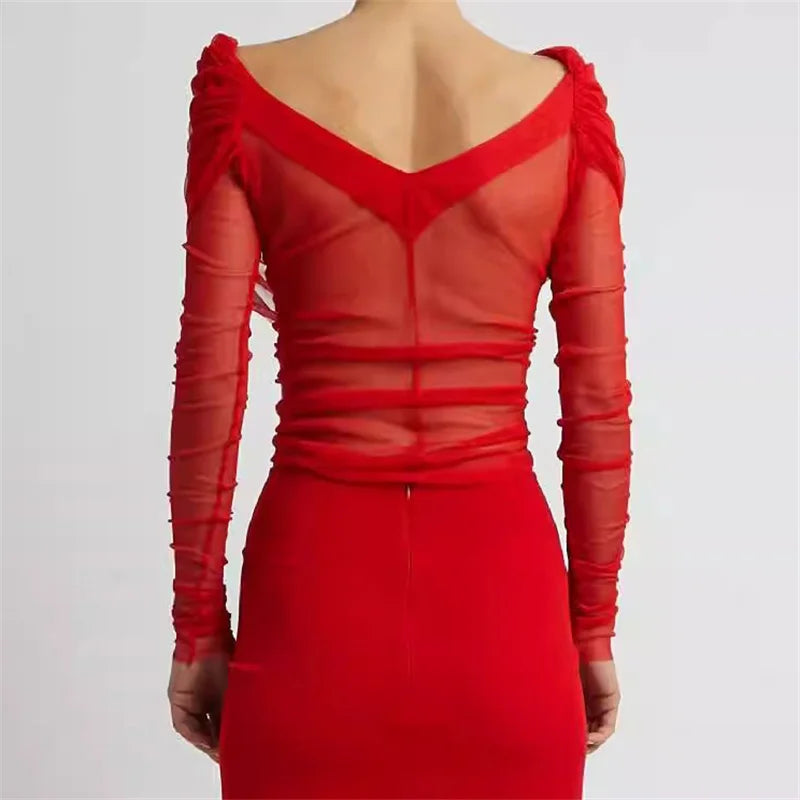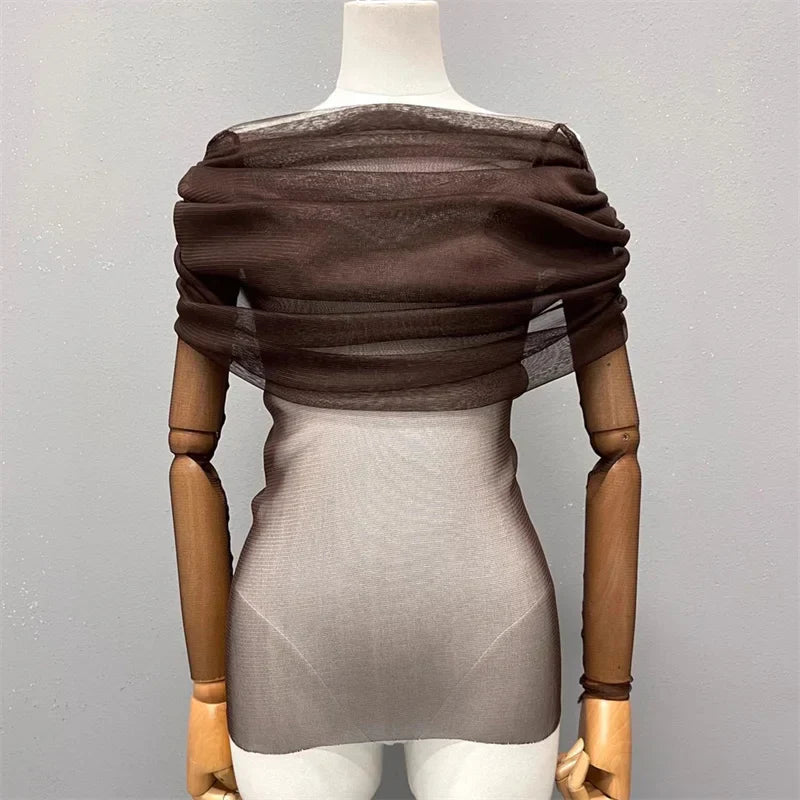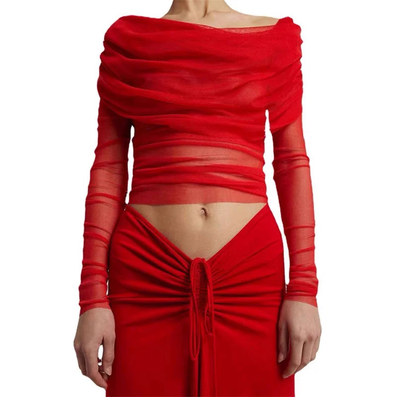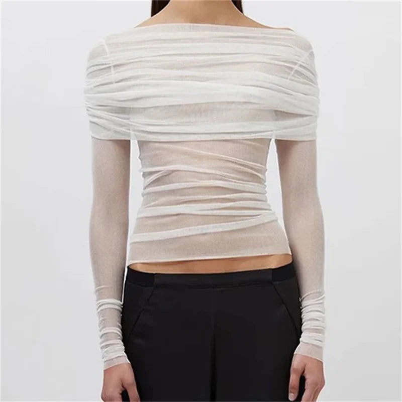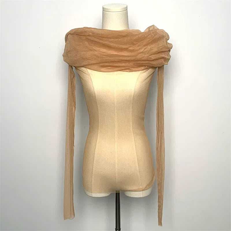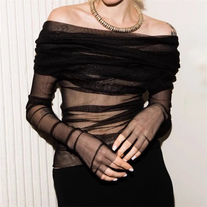 Semi-transparent Mesh Women's Long-sleeved Top