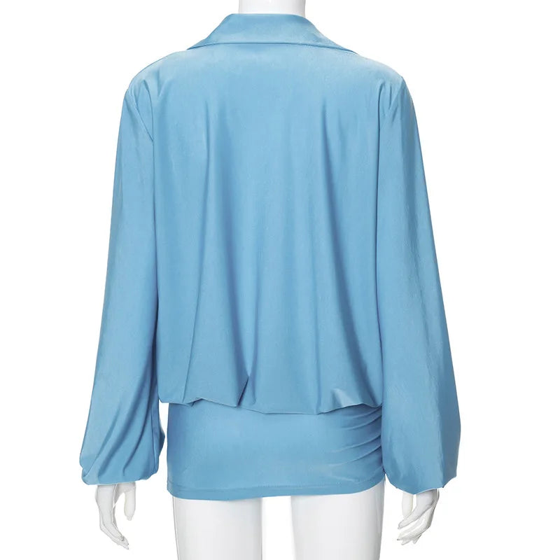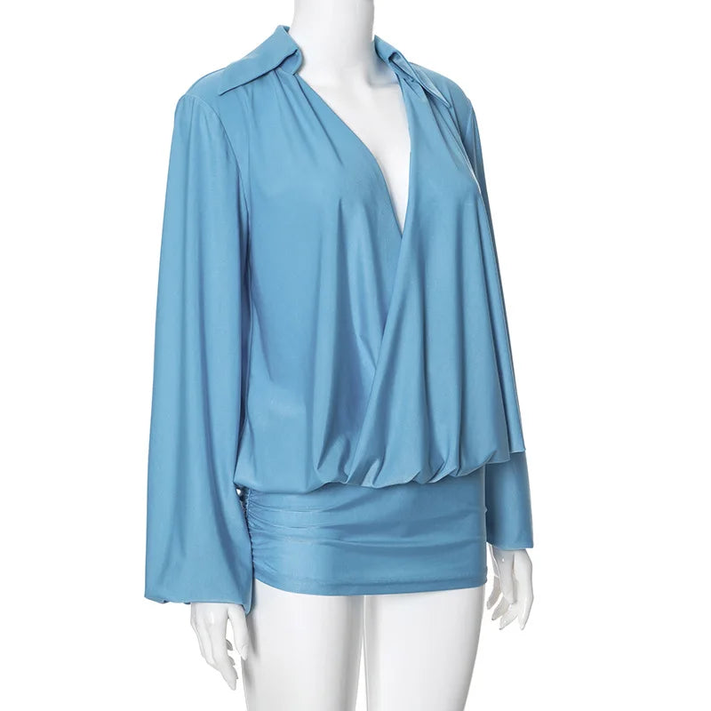 Plunge Long Sleeve Solid Color Mini Dress