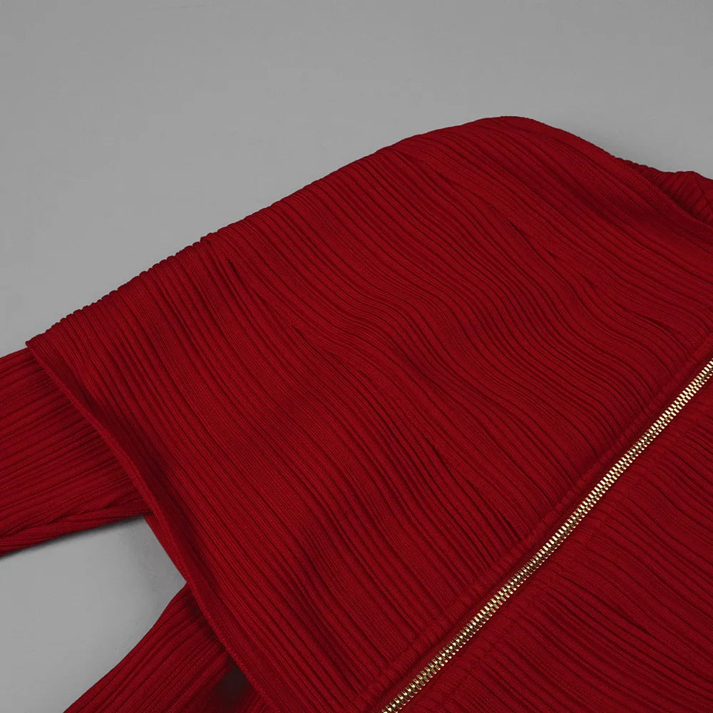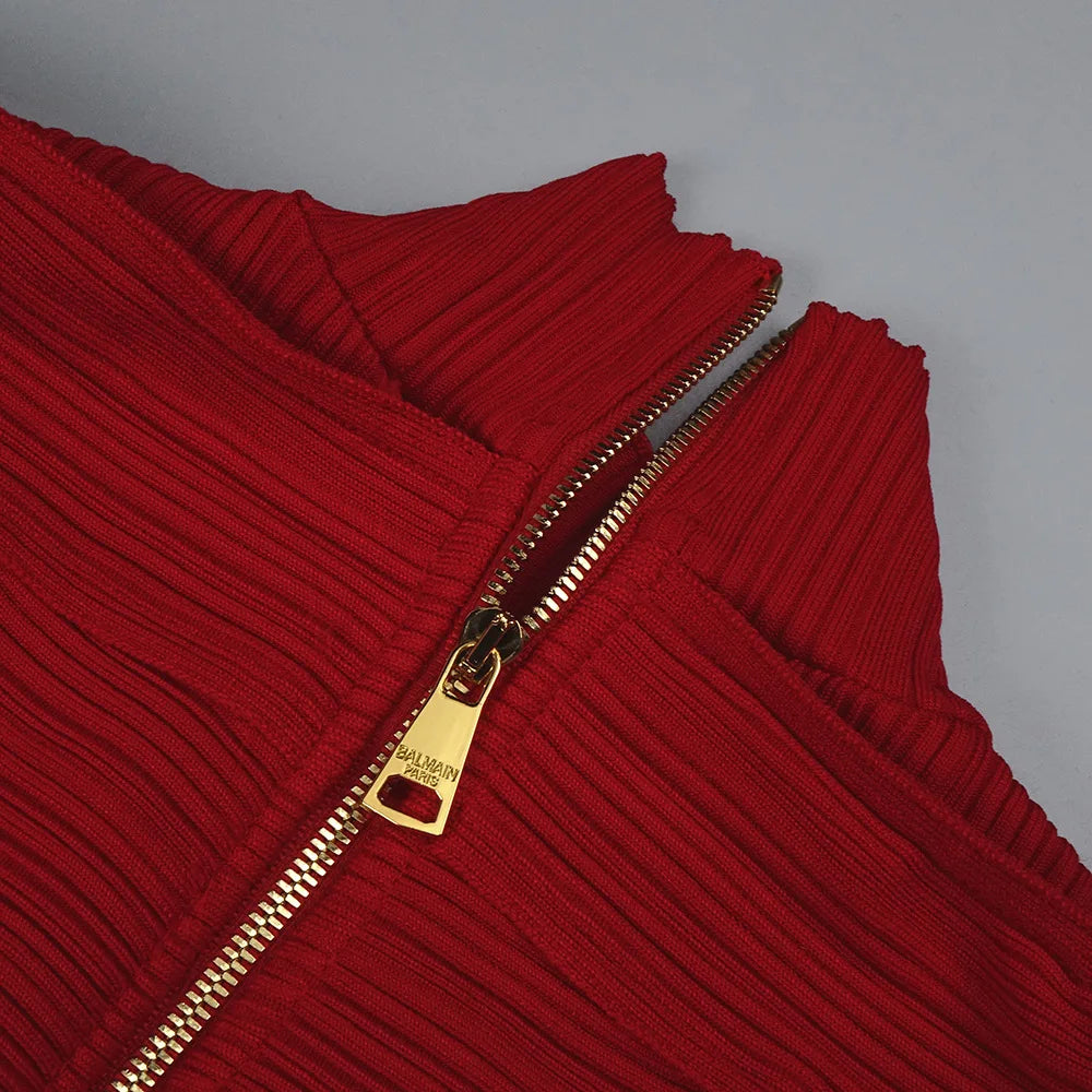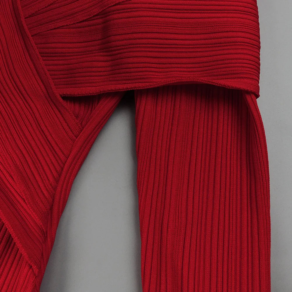 Red Bandage Turtle Neck Cross Design Long Dress