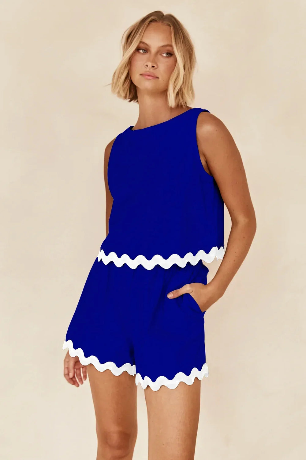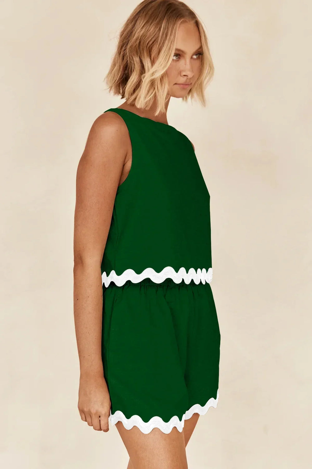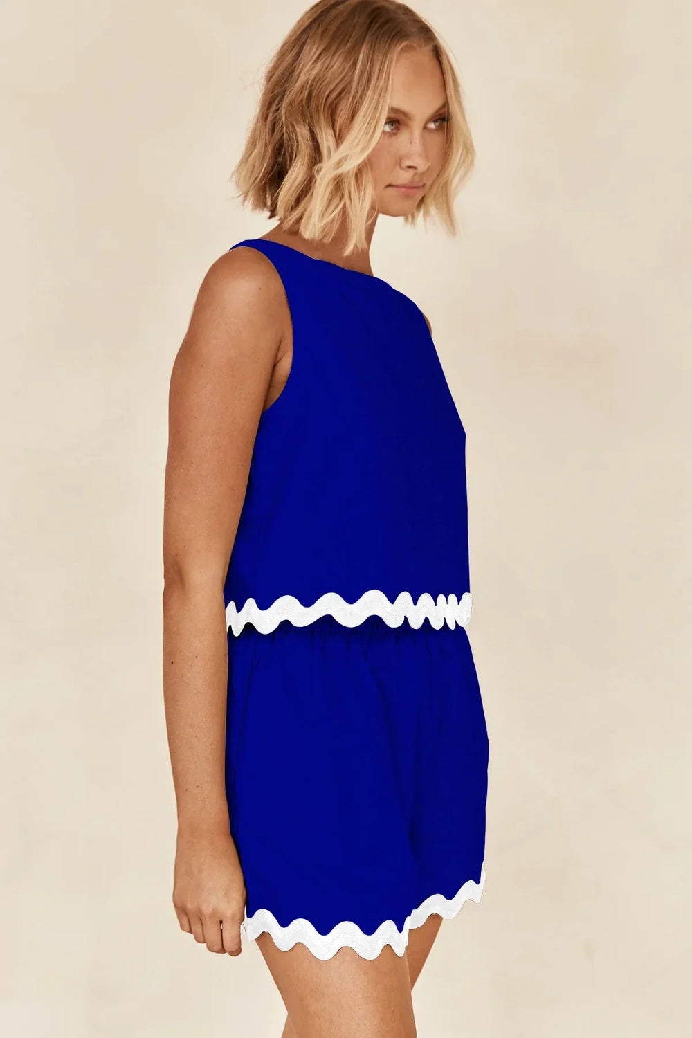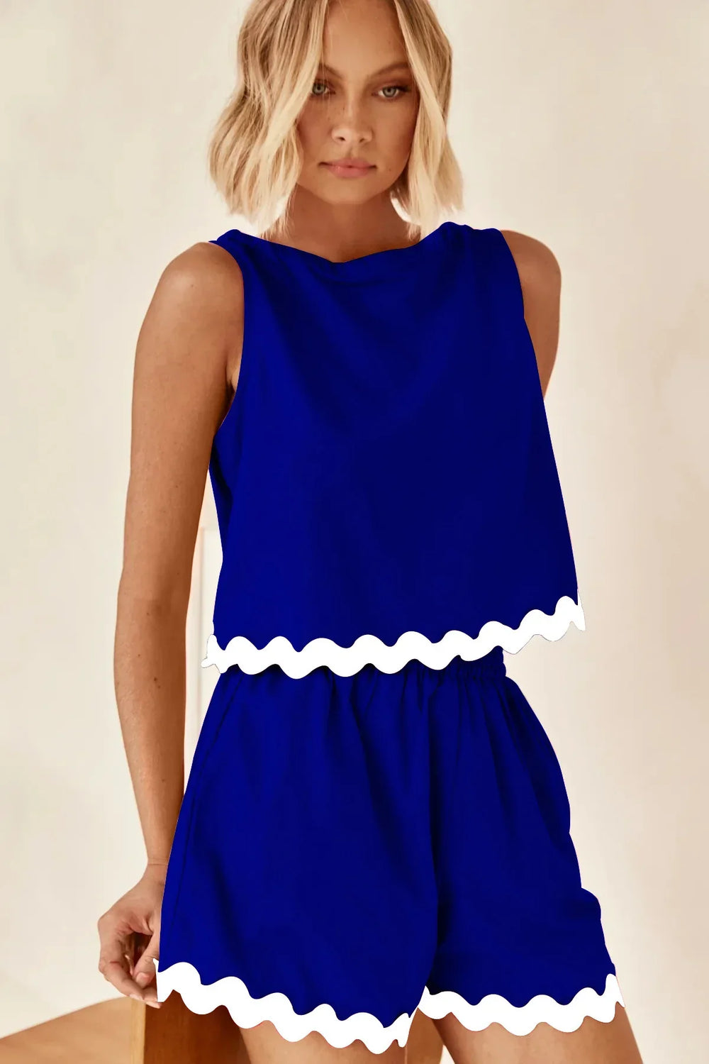 Wave Stripe Patchwork Tops High Waist Shorts Set
