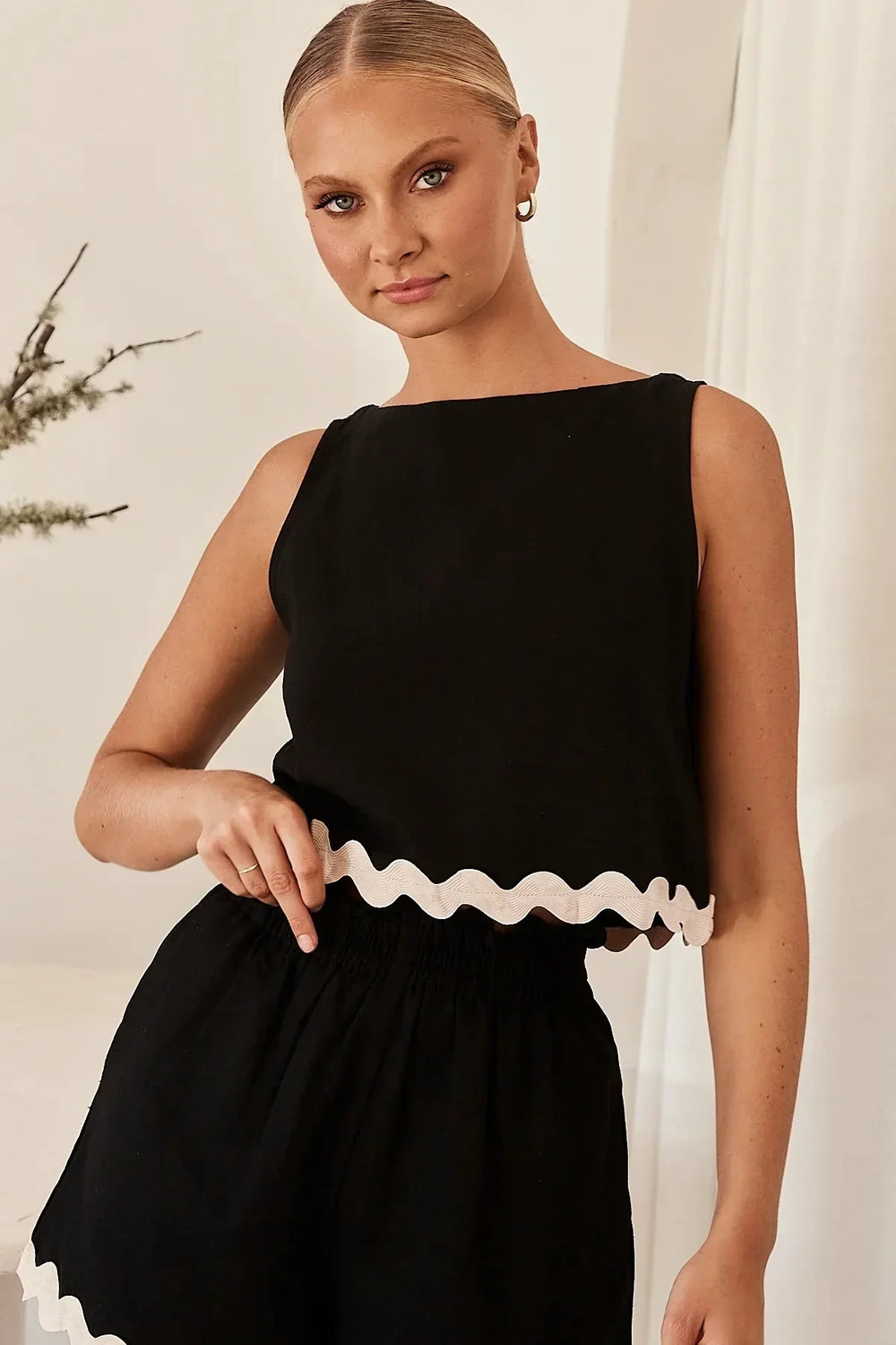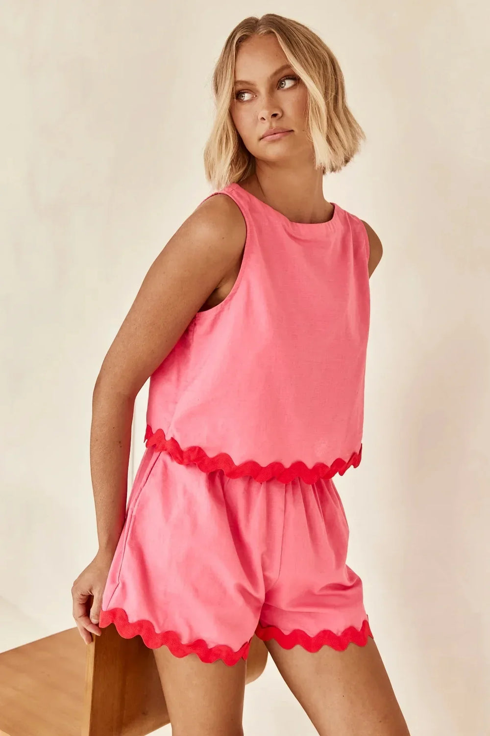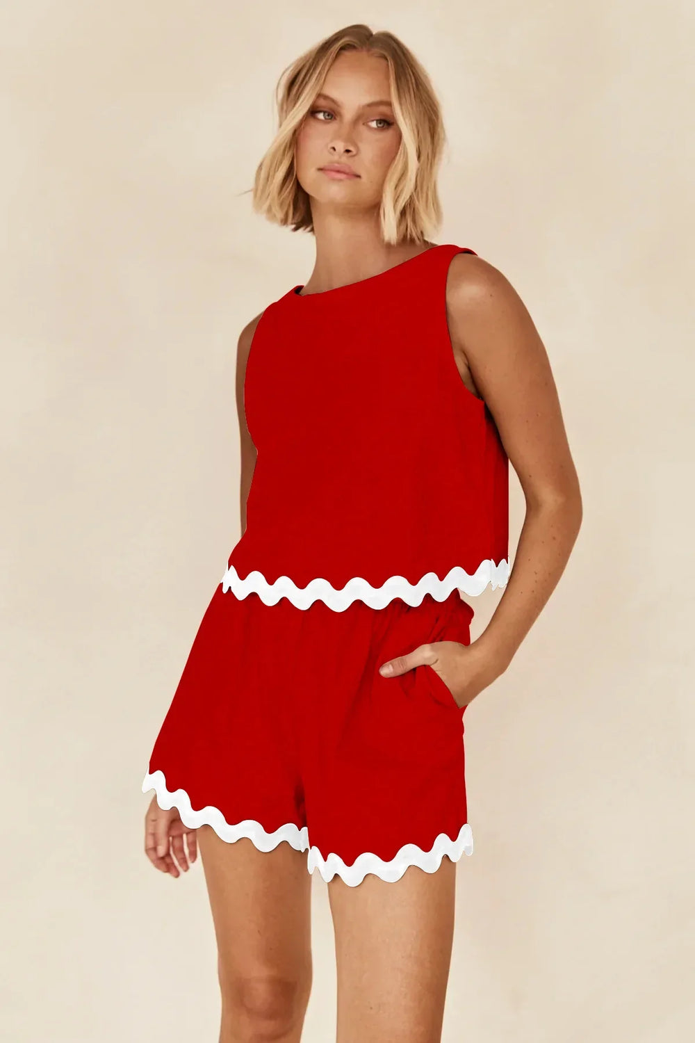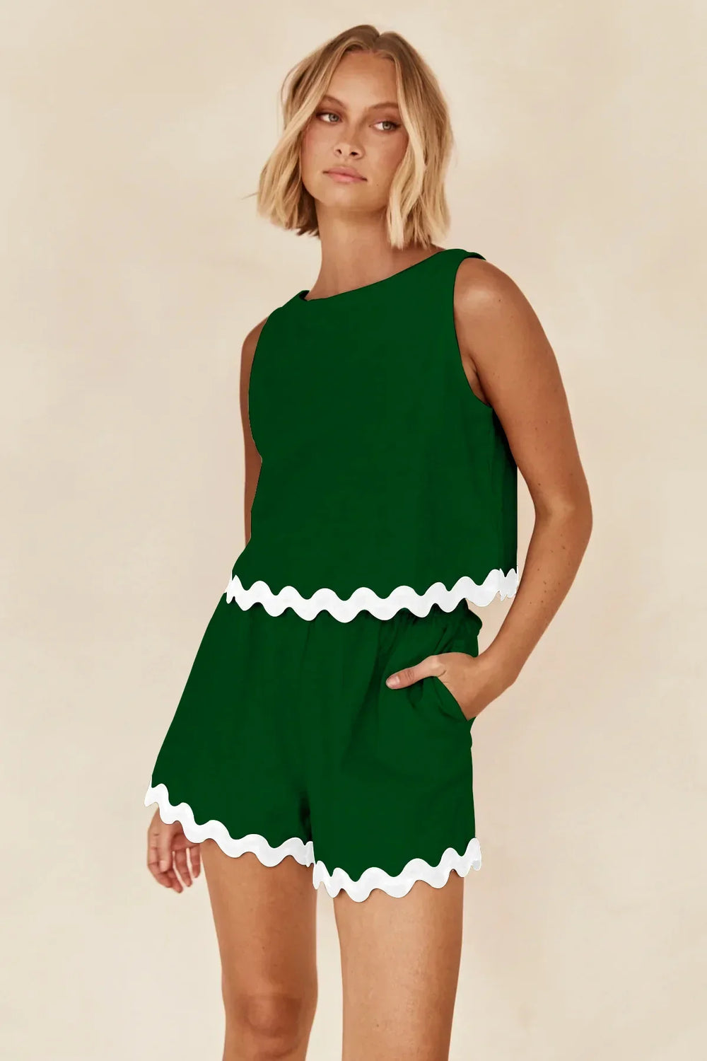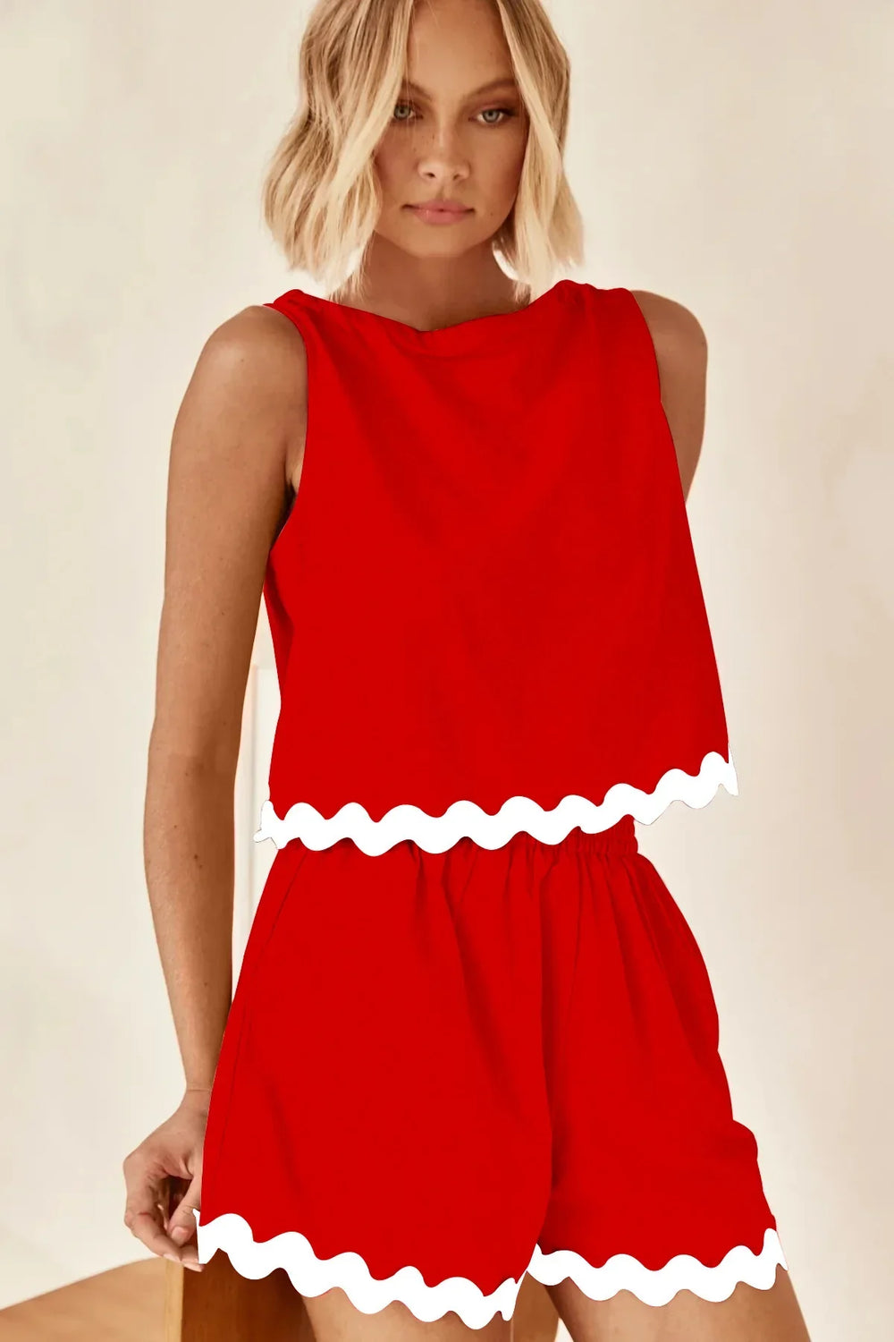 Wave Stripe Patchwork Tops High Waist Shorts Set