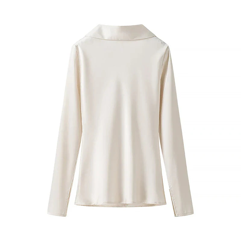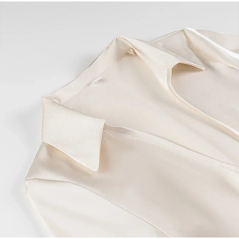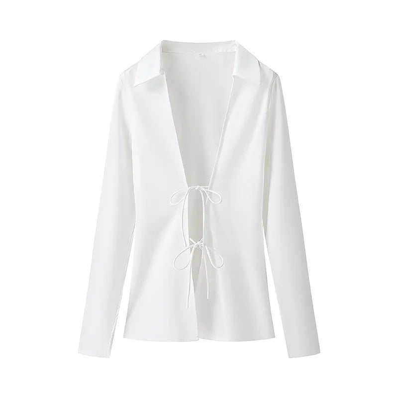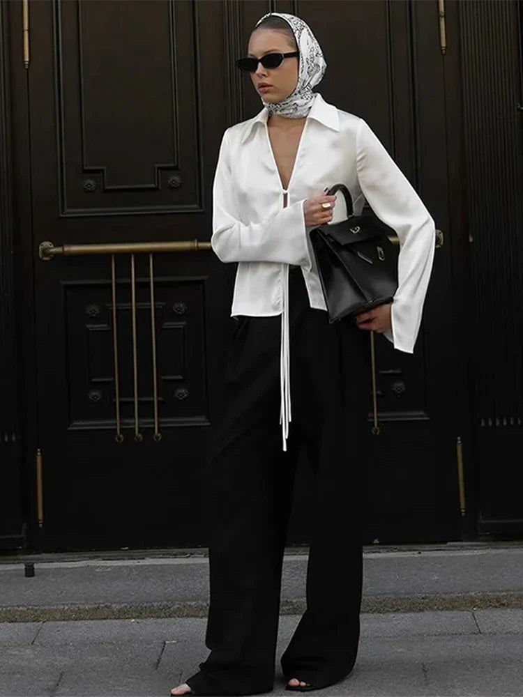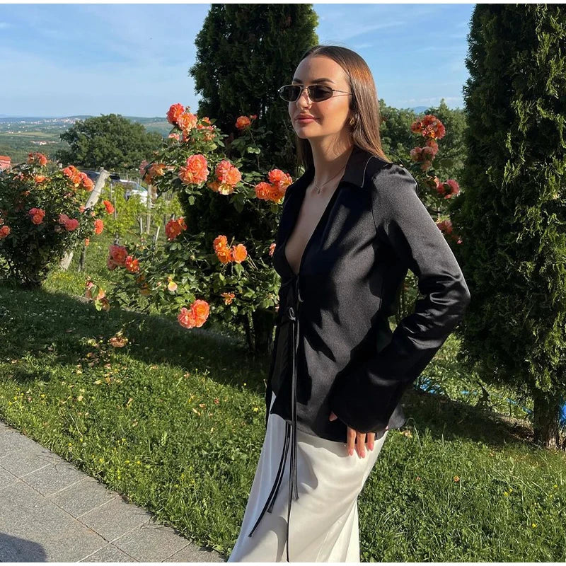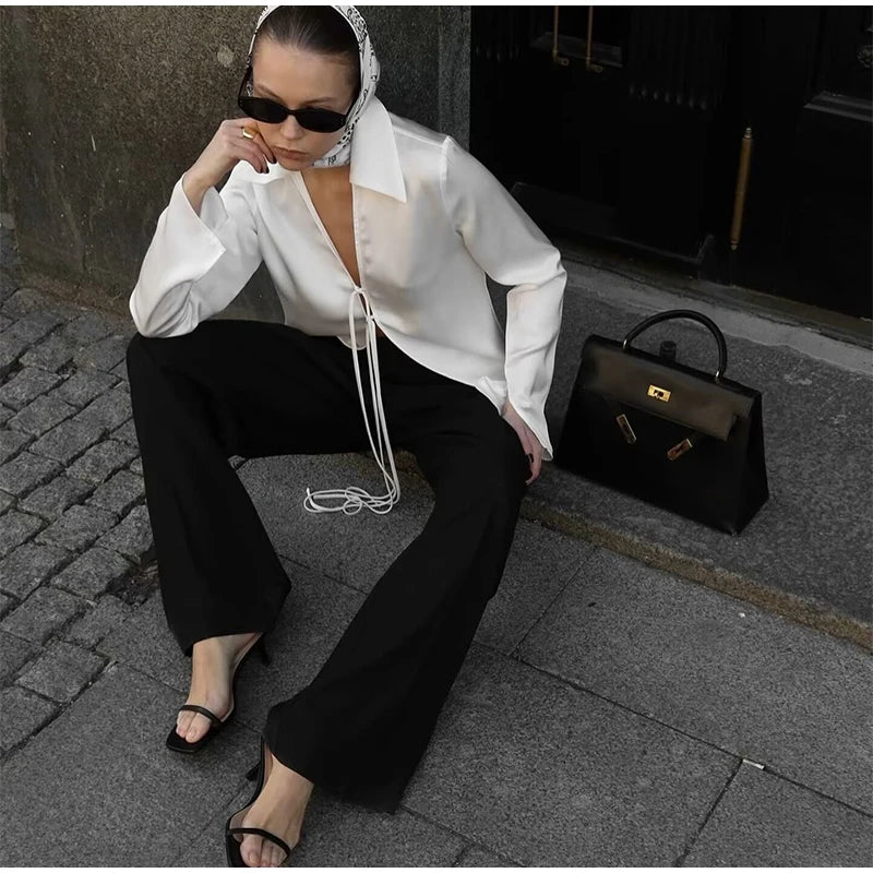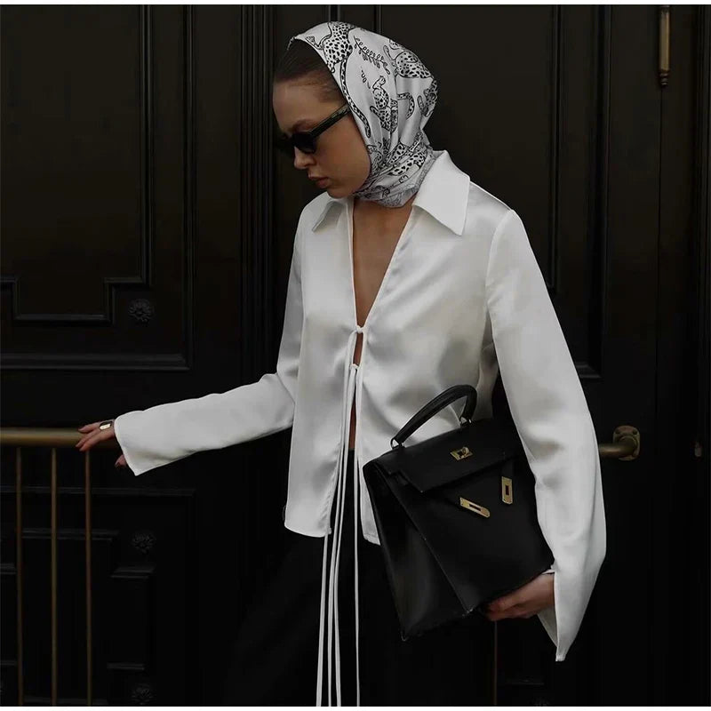 • Model Number: Elegant Satin Deep V-neck Lace Up Shirts