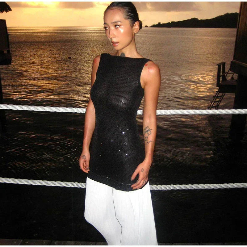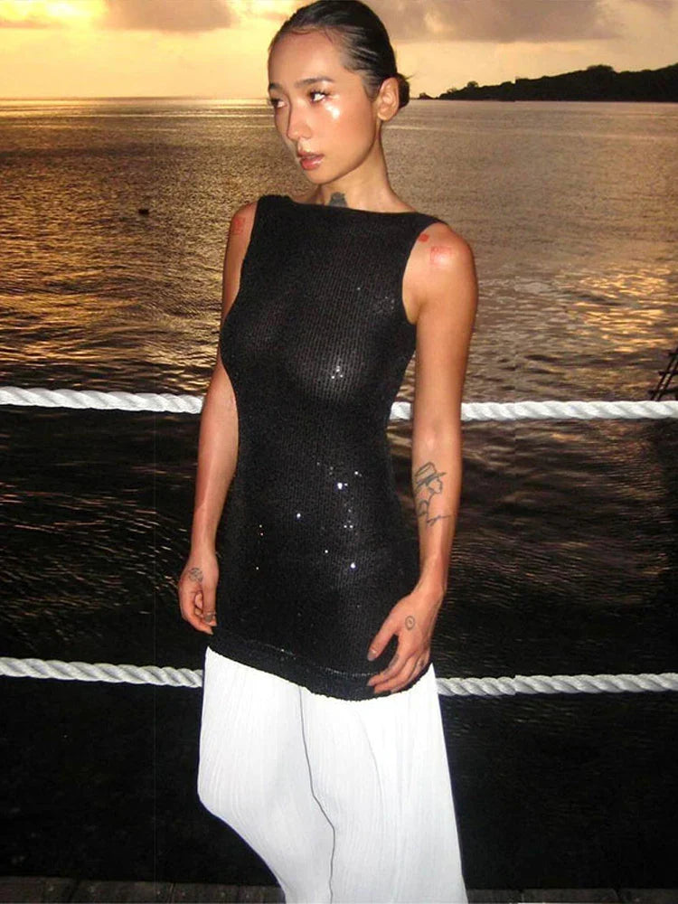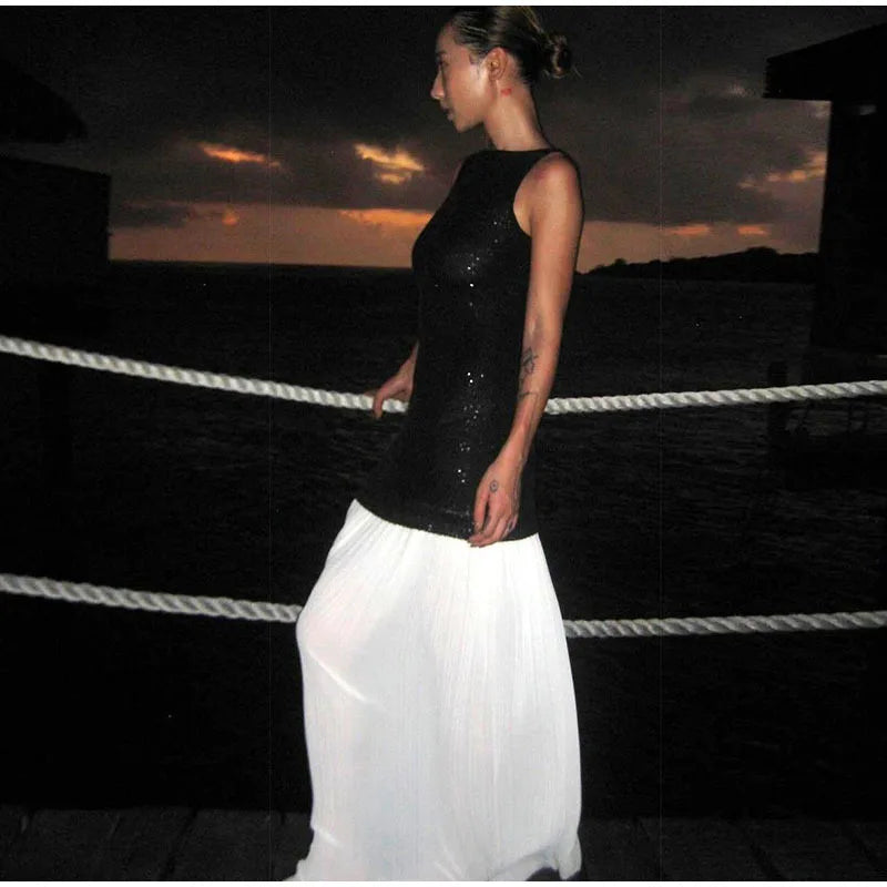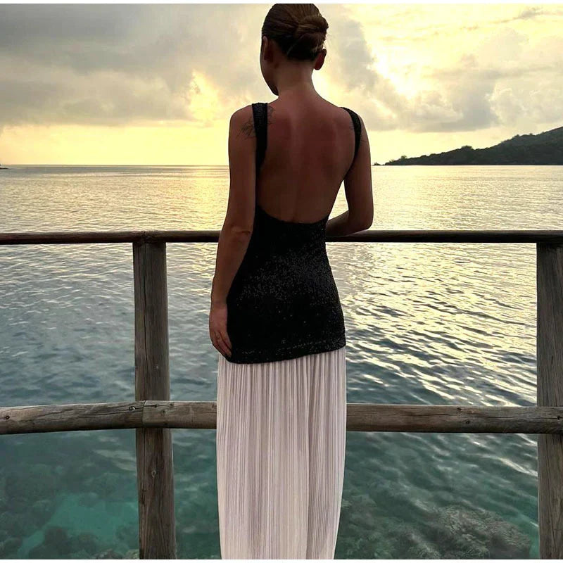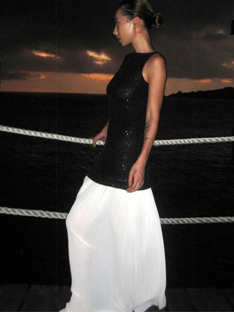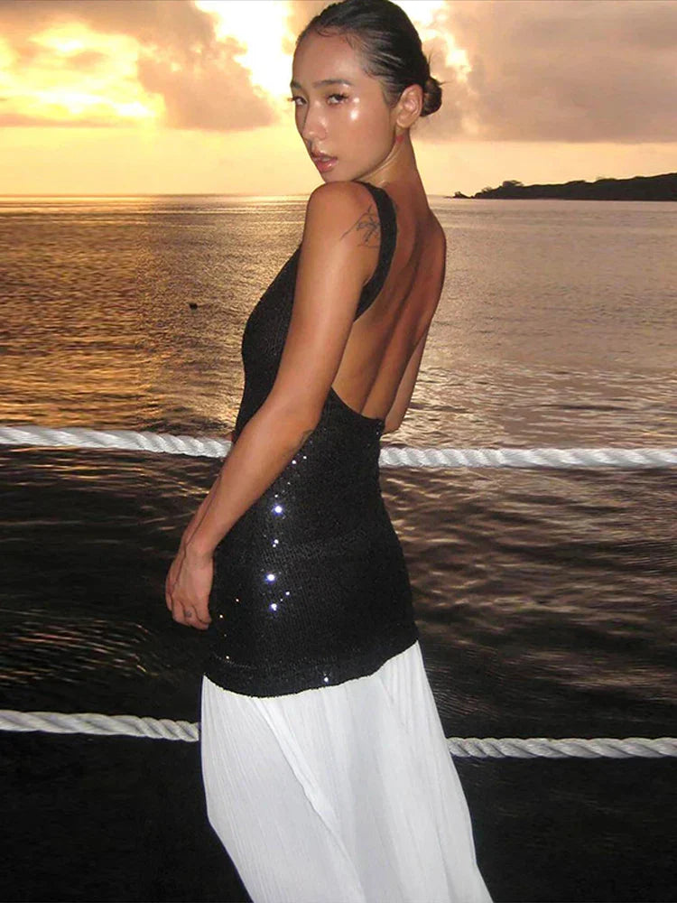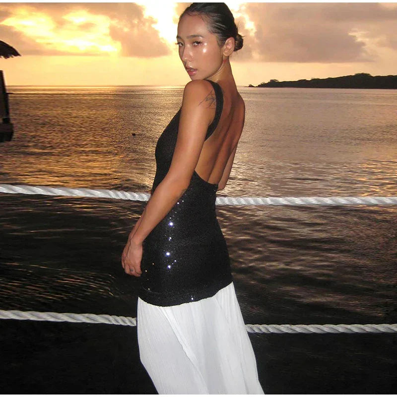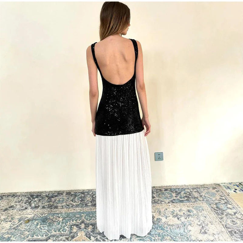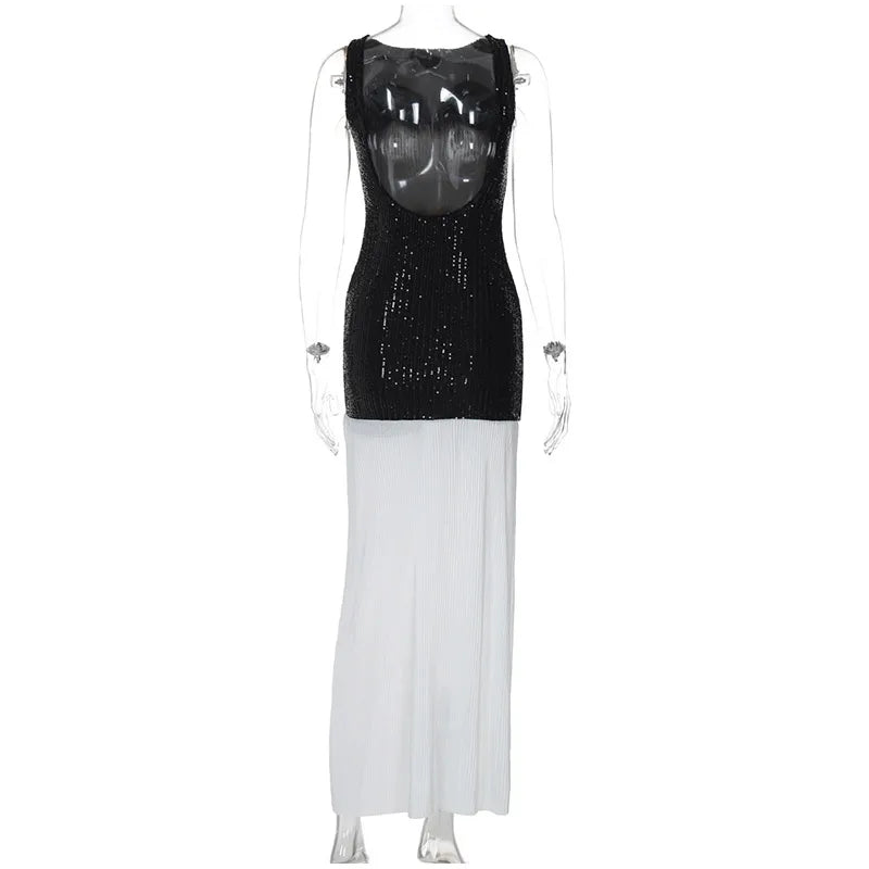 • Model Number: Shiny Sequined Patchwork Maxi Dress