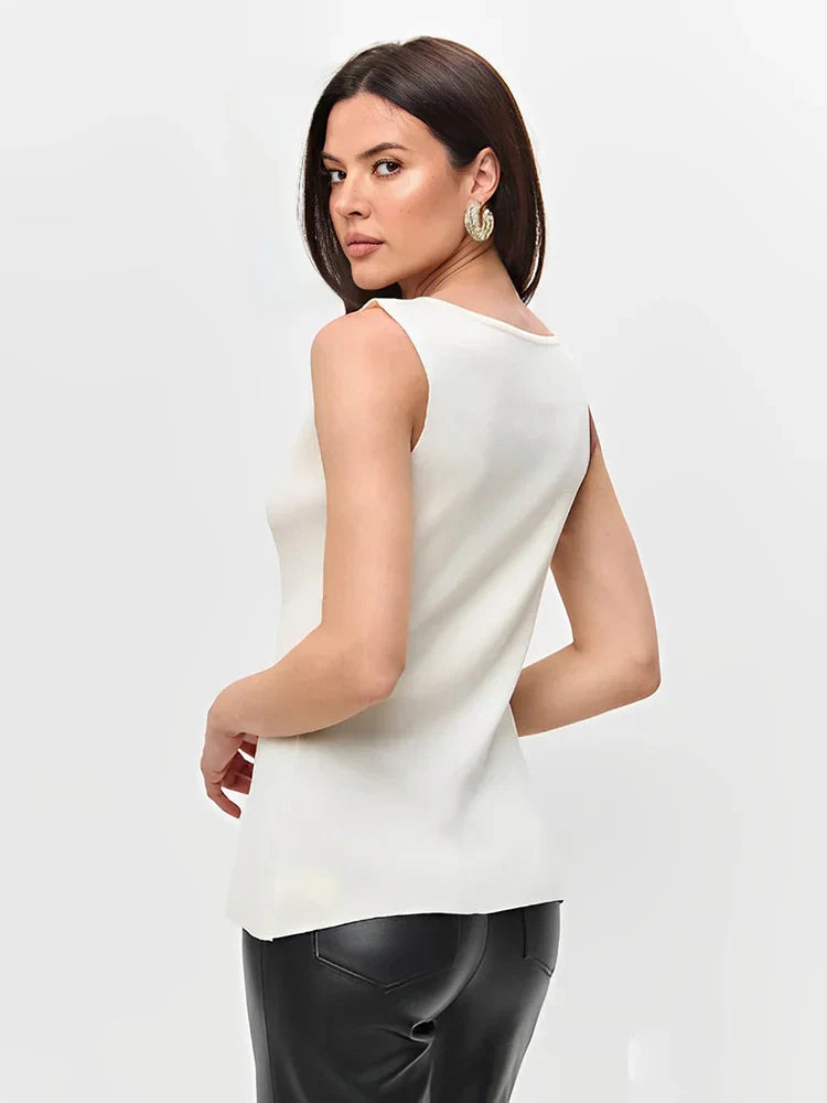 Metal Buckle Slit knitted Vest Top