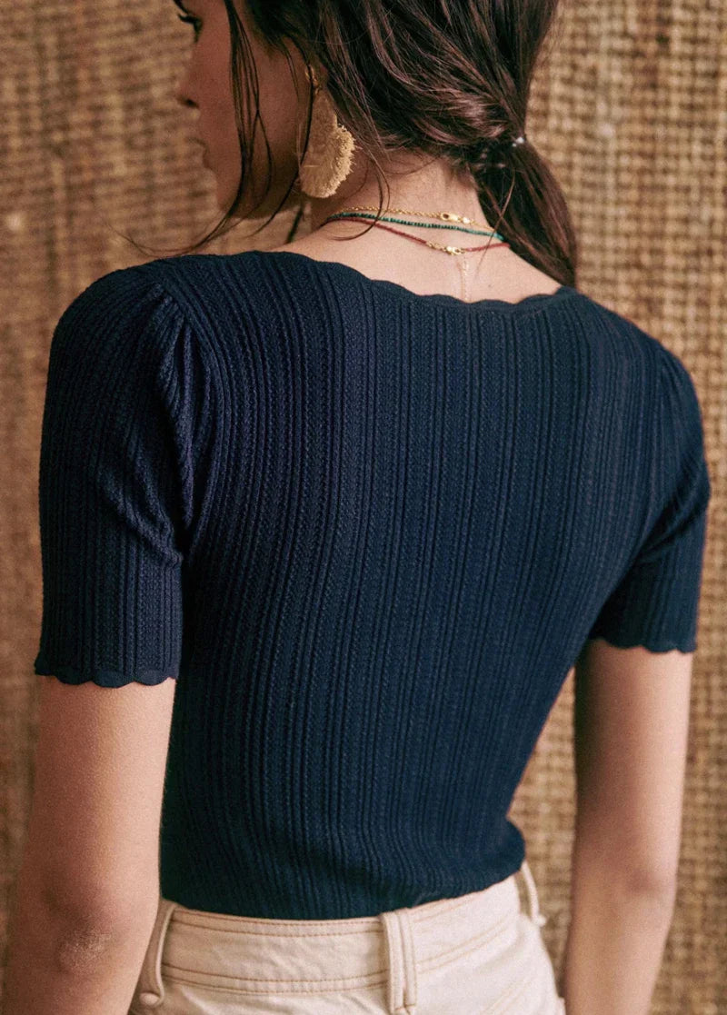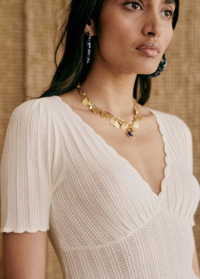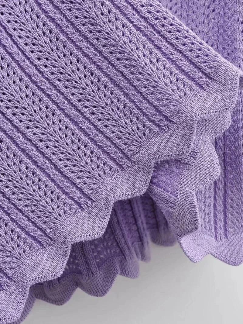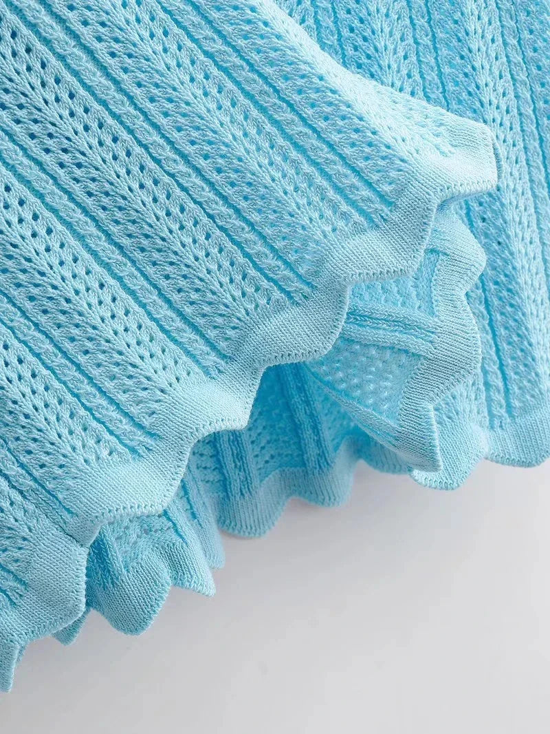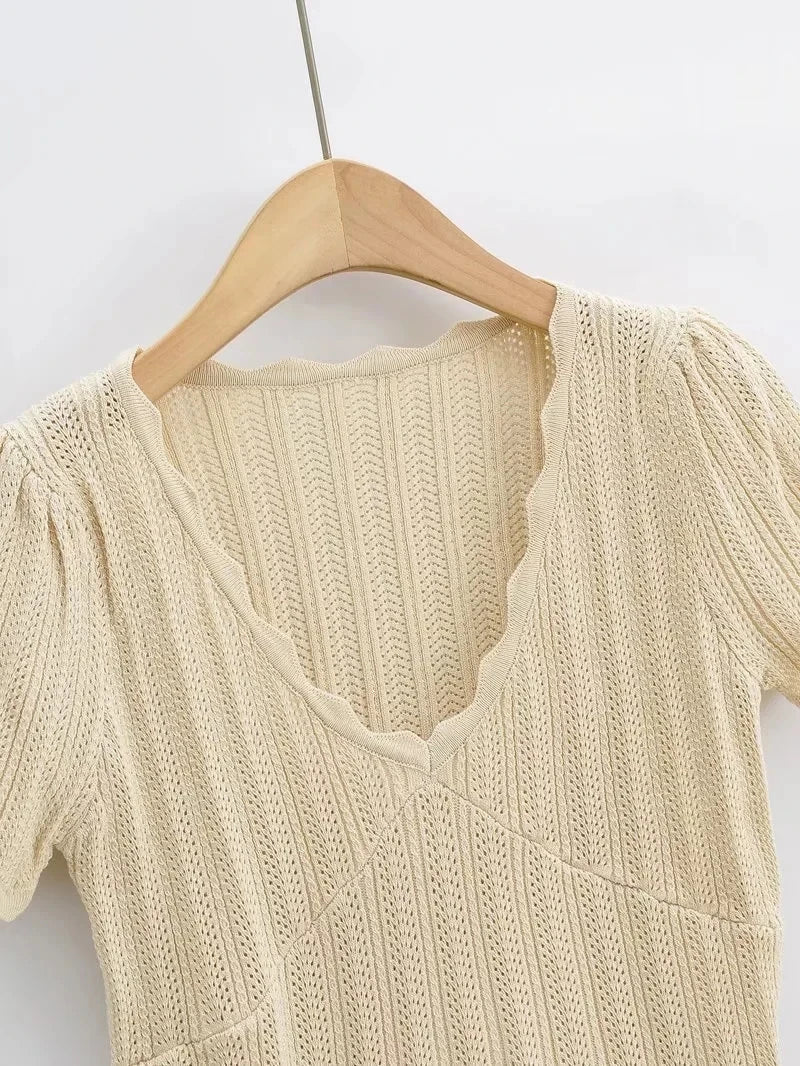 Women V Neck Knitted Crochet Tee