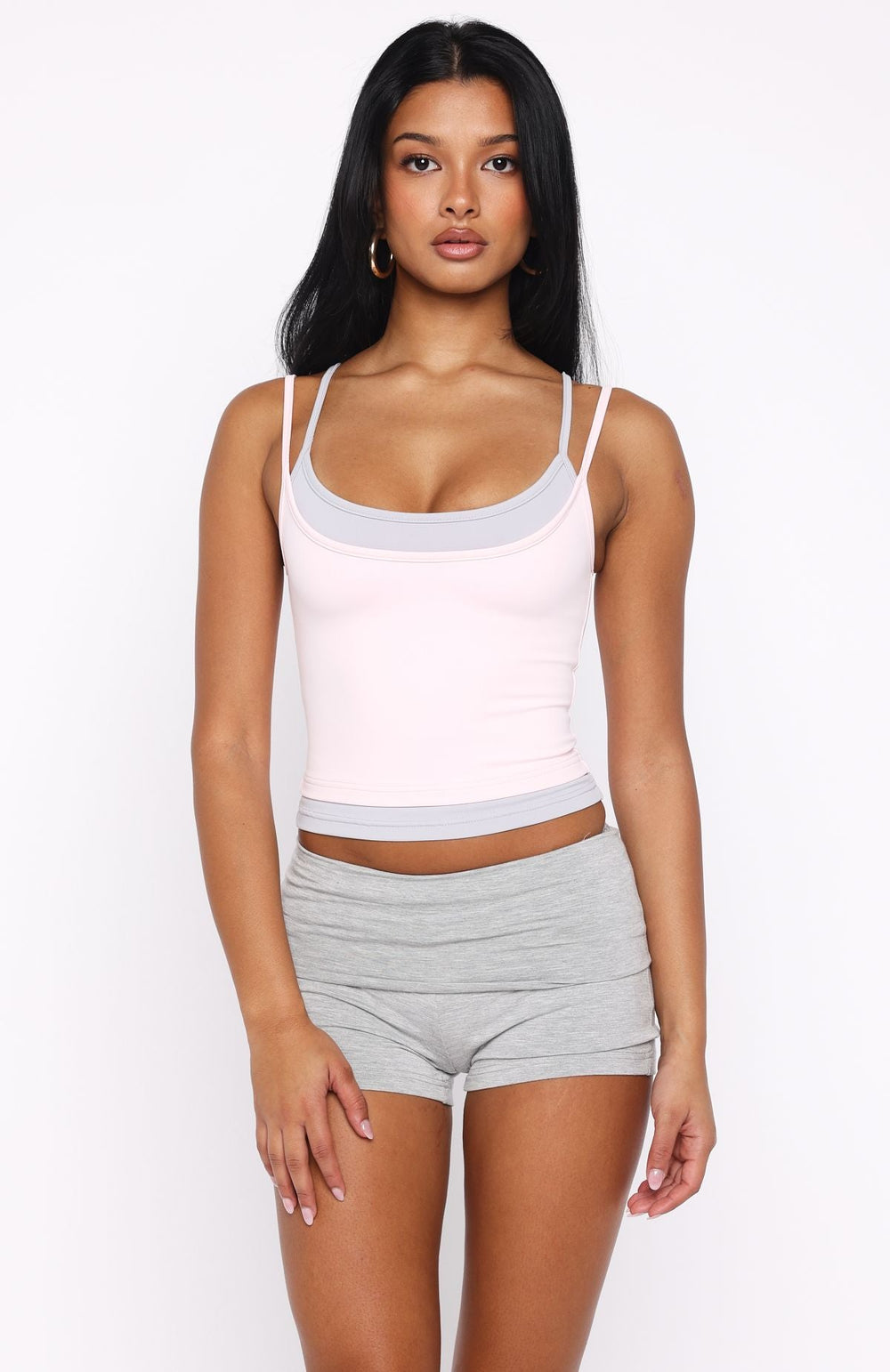 Loving the layered look! The Breaking Loose Tank Top in Pink/Grey features double-thin adjustable straps, a faux layered scoop neckline, and a high-stretch, unlined fabrication for a flattering, breathable fit. Style it effortlessly with your favorite booty shorts and sneakers for a laid-back, fresh fit.