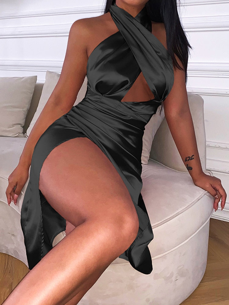 Super elegant, sexy and fashion-forward, this dress will have heads turning. The metallic satin fabric feels soft and smooth to the touch, while the design features a round neckline, sleeveless style with high slit on both sides that can beautifully show your legs. To help you shine at any occasion, this dress is also decorated with sequins.