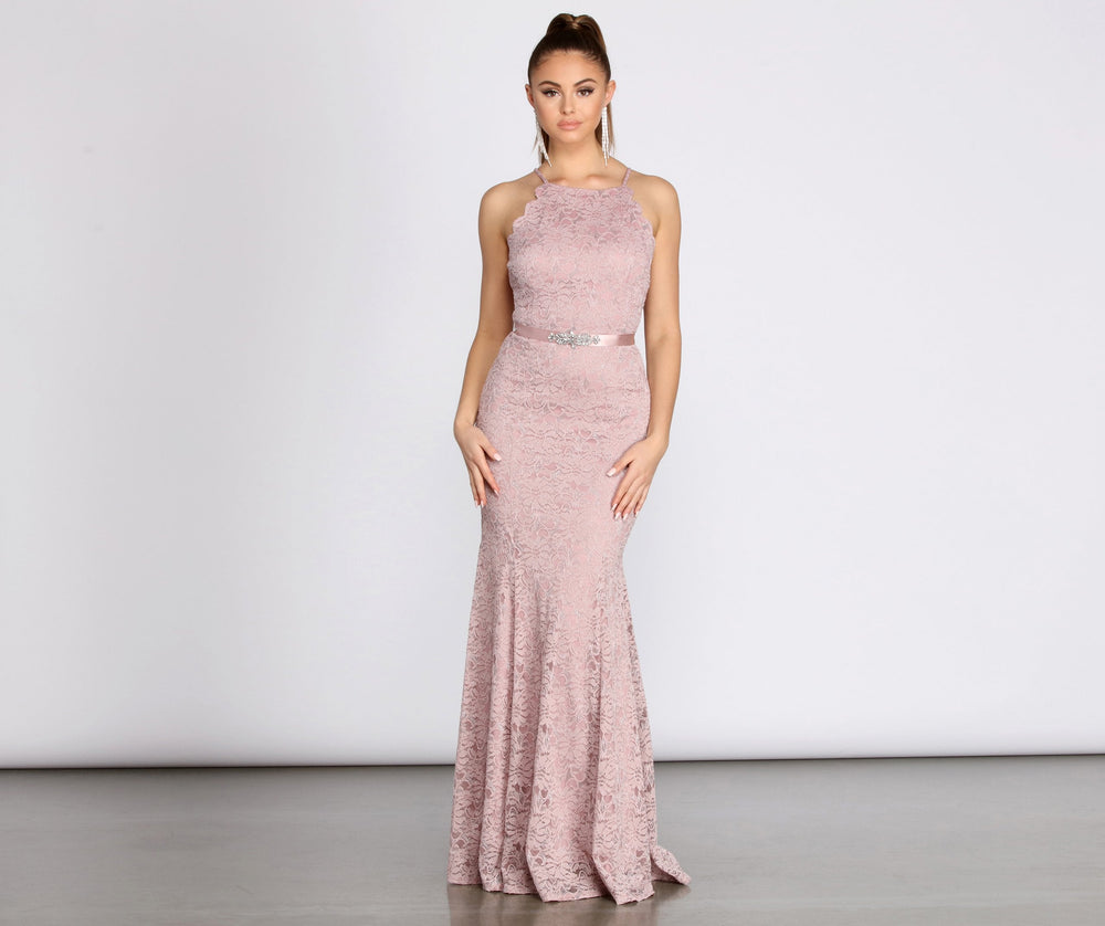 Featuring a subtle glitter knit lace composition and a gorgeous ribbon rhinestone belt. Rosella is every bit of glam and romance combined in one. Complement witha pair ofgorgeous and sparkly duster earrings tofurther elevate your look.