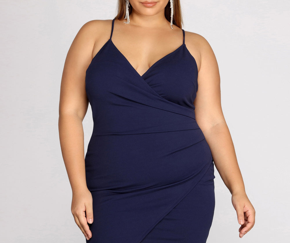This must-have dress is stylin' and so fab! The mustard yellow asymmetrical dress features a deep V neckline. spaghetti straps. a wrap bodice with ruching on the side. and a wrap skirt with an asymmetrical hem. Dress is composed of an unlined crepe fabric with a moderate stretch.