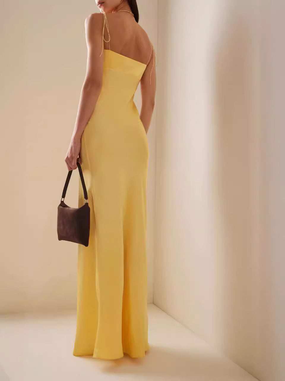 Make a sparkly statement at your next soiree in the trendy glam Addison formal dress! Featuring a cowl neckline. spaghetti straps. a floor-length fitted silhouette. and a lined glitter mesh fabric. you'll bring radiance to the room. Complete your illuminating look with rhinestone earrings and clear heels.
