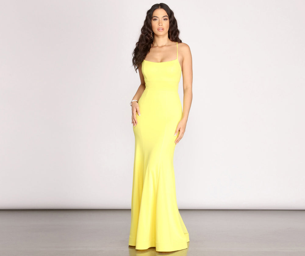 Show off that figure in Iva's flattering mermaid silhouette! With a horsehair trim hem. her skirt looks more sculpted and structured. giving you fullness without a petticoat! Wear your hair in soft curls and add some rhinestone earrings and a clutch to match!