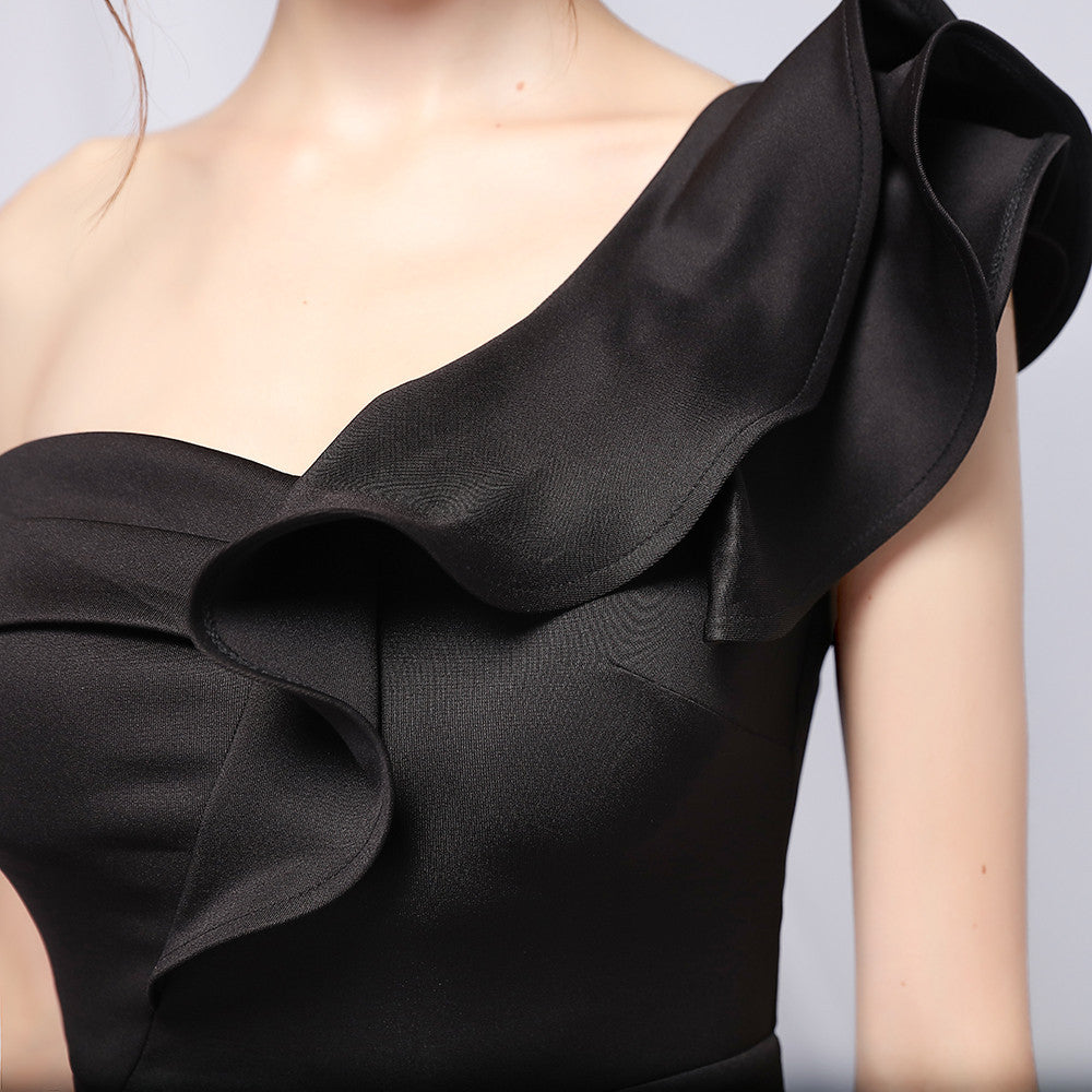 Keep it luxe in the stunning Delana dress that brings the sophistication to your special evening. She features a unique one-shoulder neckline with a charming bow accent on the left shoulder. a floor-length mermaid silhouette. and composed of a captivating satin-like fabric. Complete your special occasion outfit with rhinestone earrings.