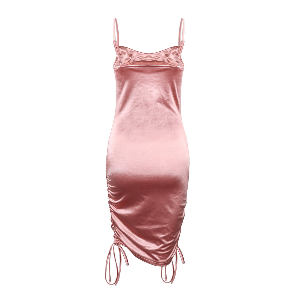 Step out looking sophisticated in a formal dress that radiates luxe. Lennox features a one-shoulder neckline with a sleek spaghetti strap. ruching. and an asymmetrical mini-length silhouette. The dress is composed of a stretch satin fabric that offers a form-hugging fit with a moderate stretch. Complete look with rhinestone heels.