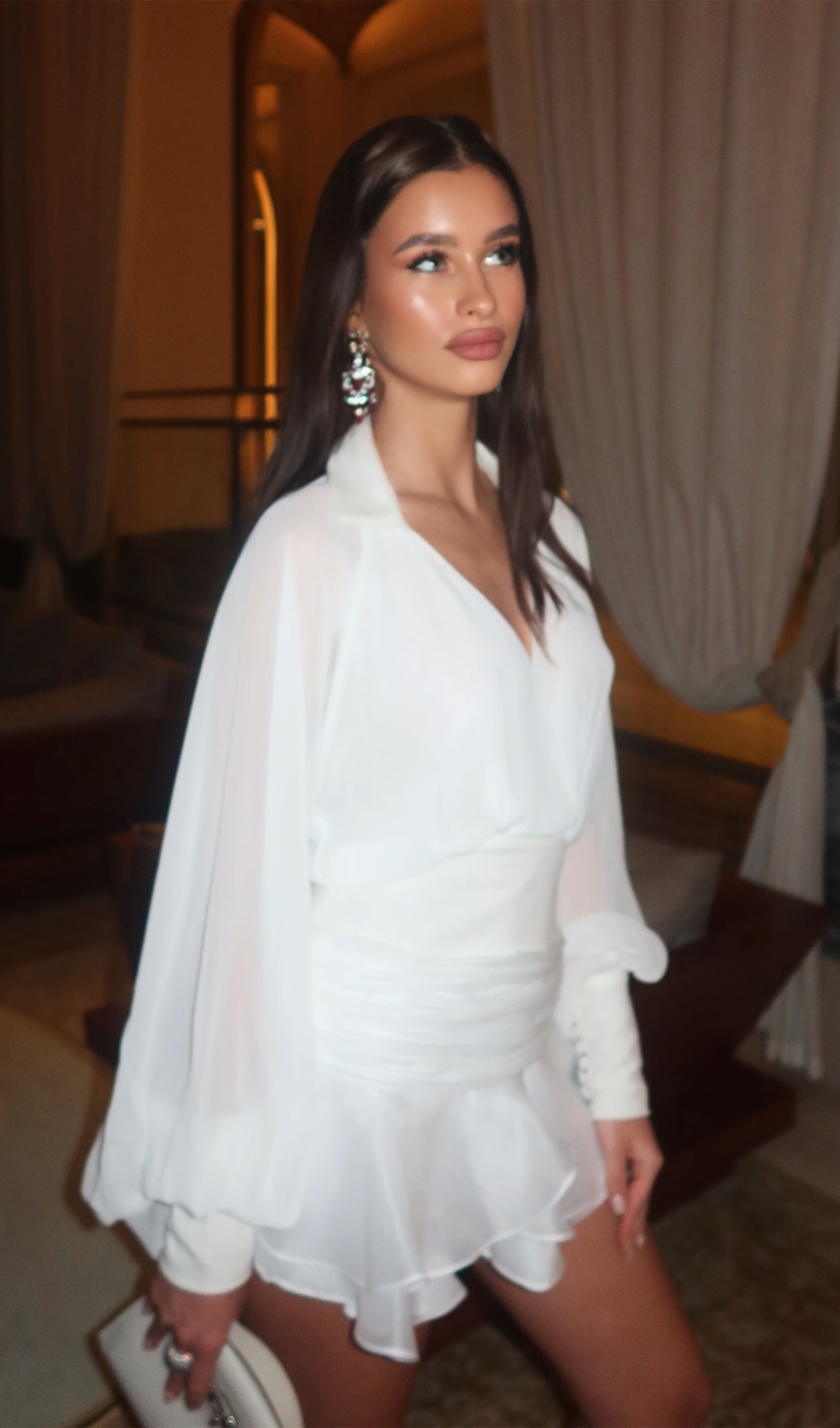 The Angelina Lantern Sleeve Mini Dress is a wardrobe essential for those who love timeless elegance with a contemporary twist. Elevate your style effortlessly with this standout piece, ideal for any fashionable occasion.