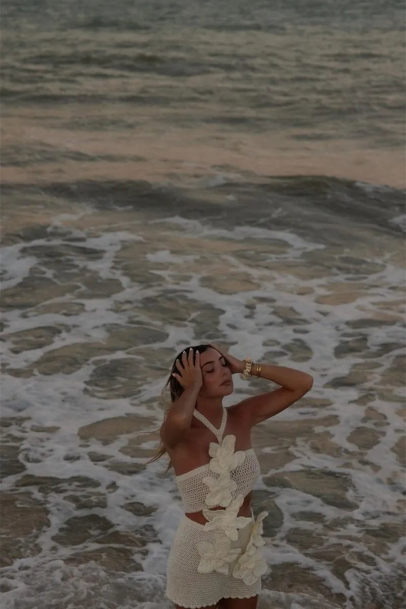Step into effortless elegance with the Margaret Halter Knit Floral Mini Dress, a perfect blend of feminine charm and modern style. Featuring delicate floral knit detailing and a flattering halter neckline, this dress is designed to enhance your silhouette while keeping you comfortable. Whether you're heading to a brunch, a summer event, or a night out, the Margaret dress ensures you make a statement.