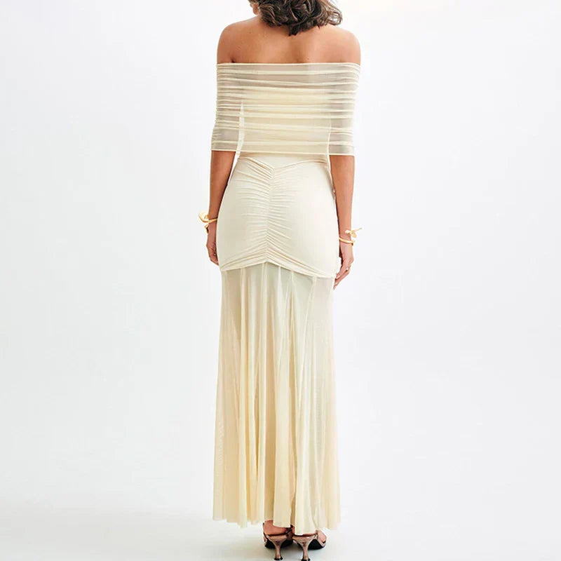 Make a stunning entrance in Jessica’s Glamour Pleat Dress, designed with a flattering off-shoulder neckline and high waist. This sexy, strapless evening dress features exquisite patchwork detailing, perfect for showcasing your style at any upscale event.