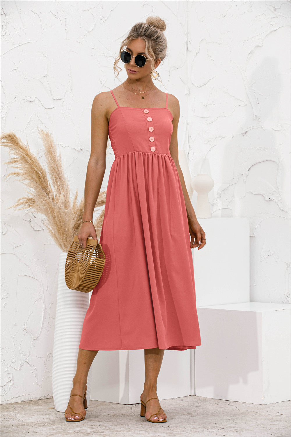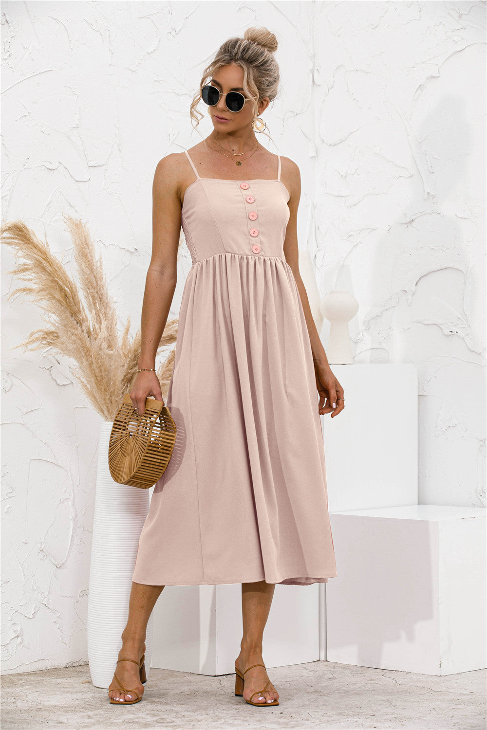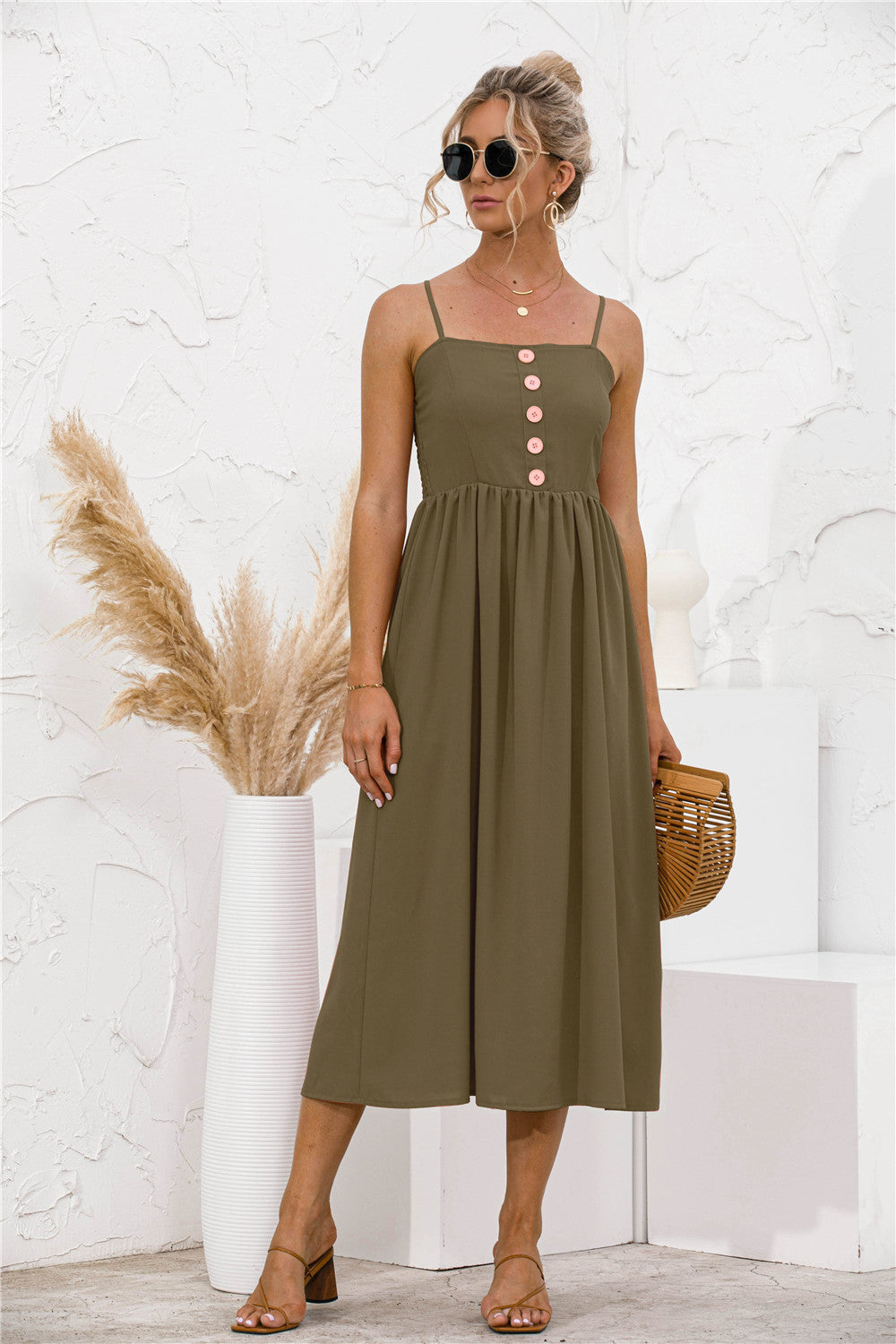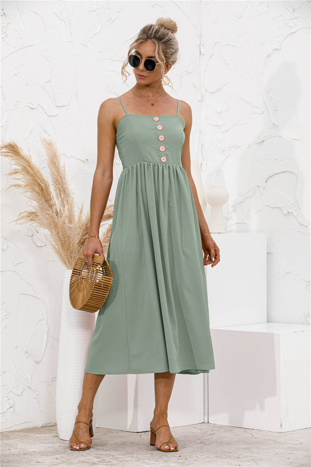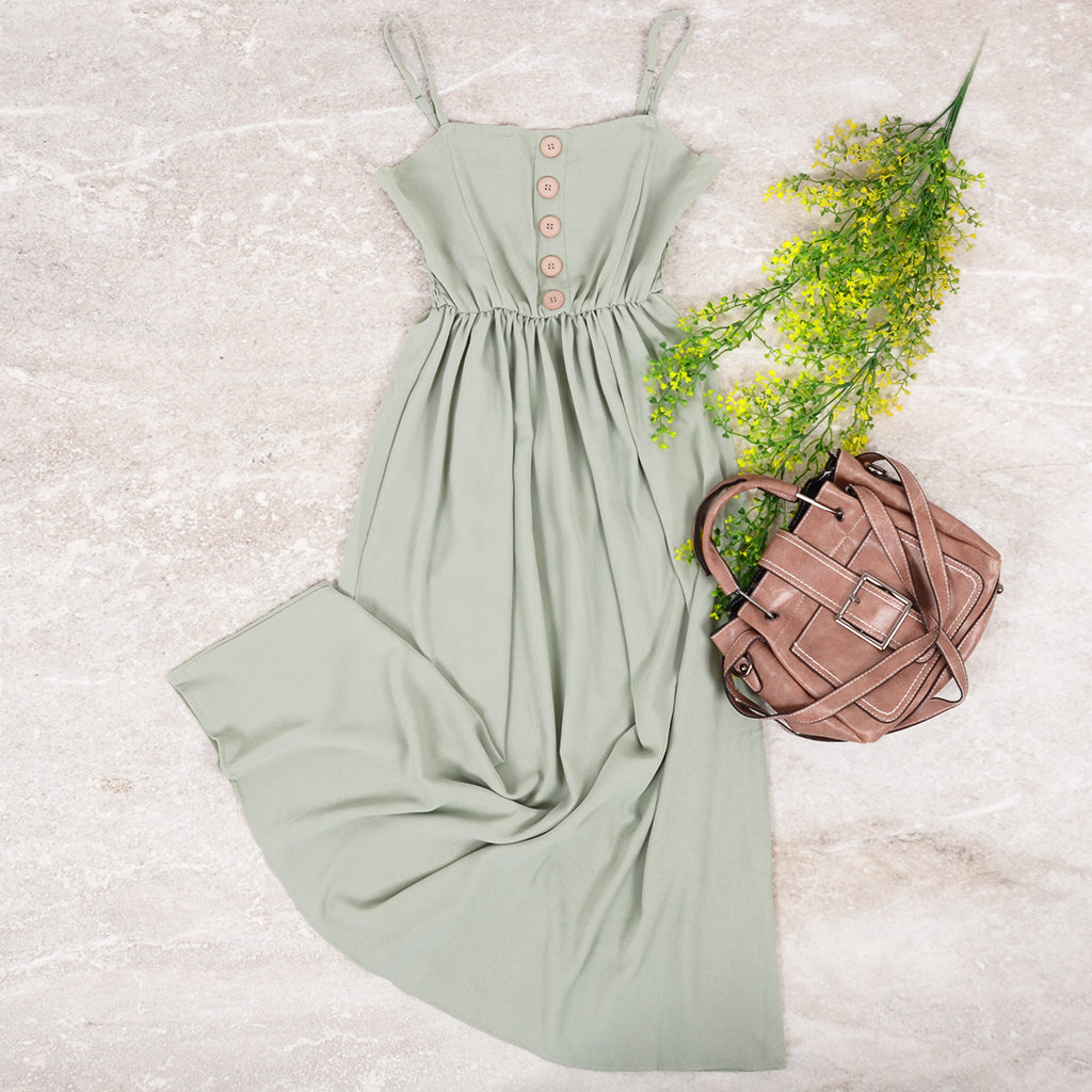 Vibemartini cami midi dress is detailed with a button front. cinched waist that has the ruffle flounce flare out. and adjustable camisole dress. Made with 100% soft polyester that's light and breathable for casual wear at home or outside on sunny days. The below knee long dress is fantastic when paired with your favorite clutch and sandals. With all the amazing bright colors easily pair this dress with your heels or sandals and your best summer accessories.