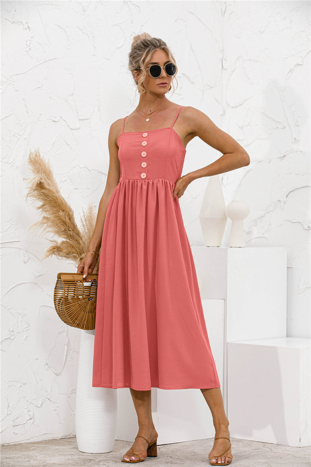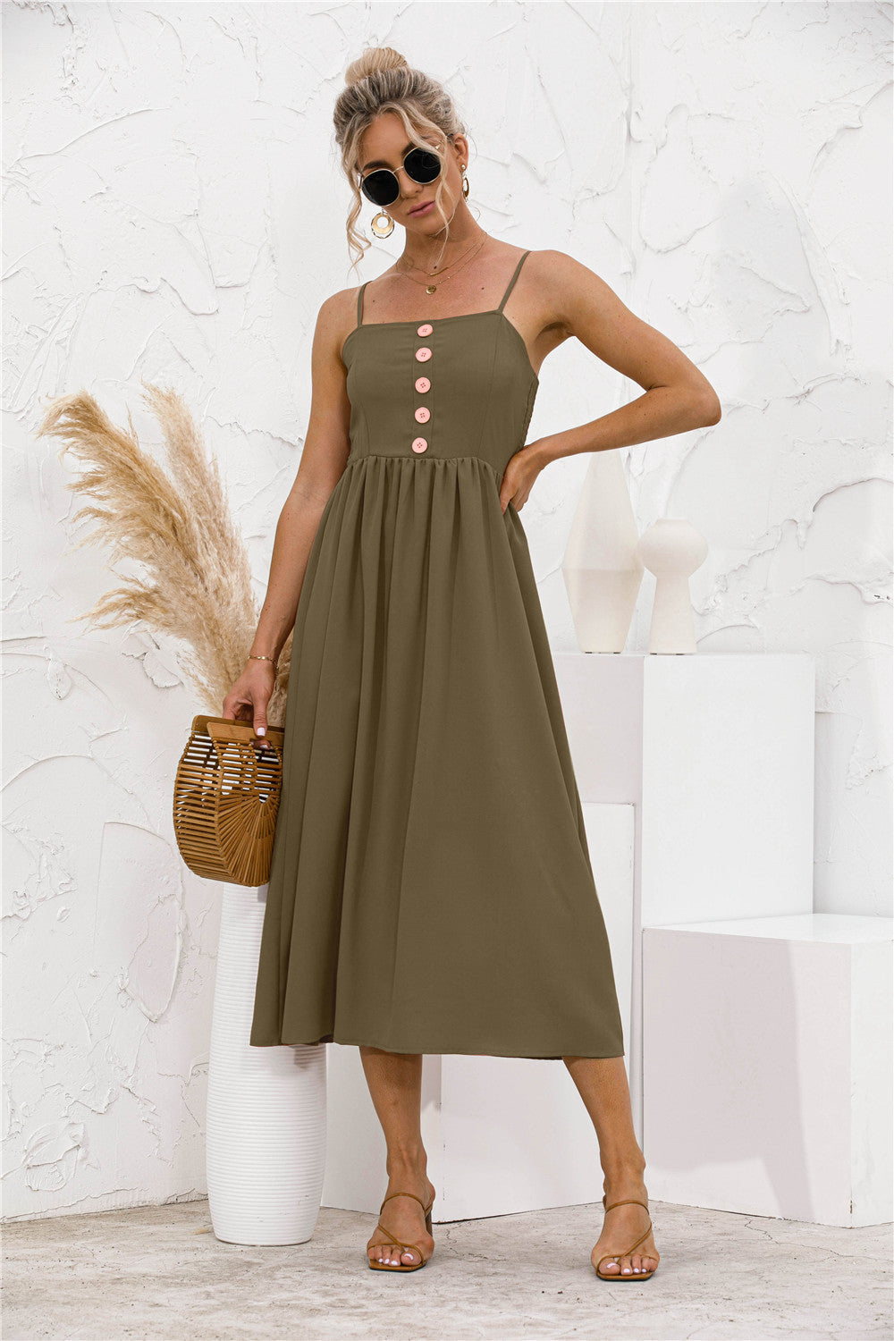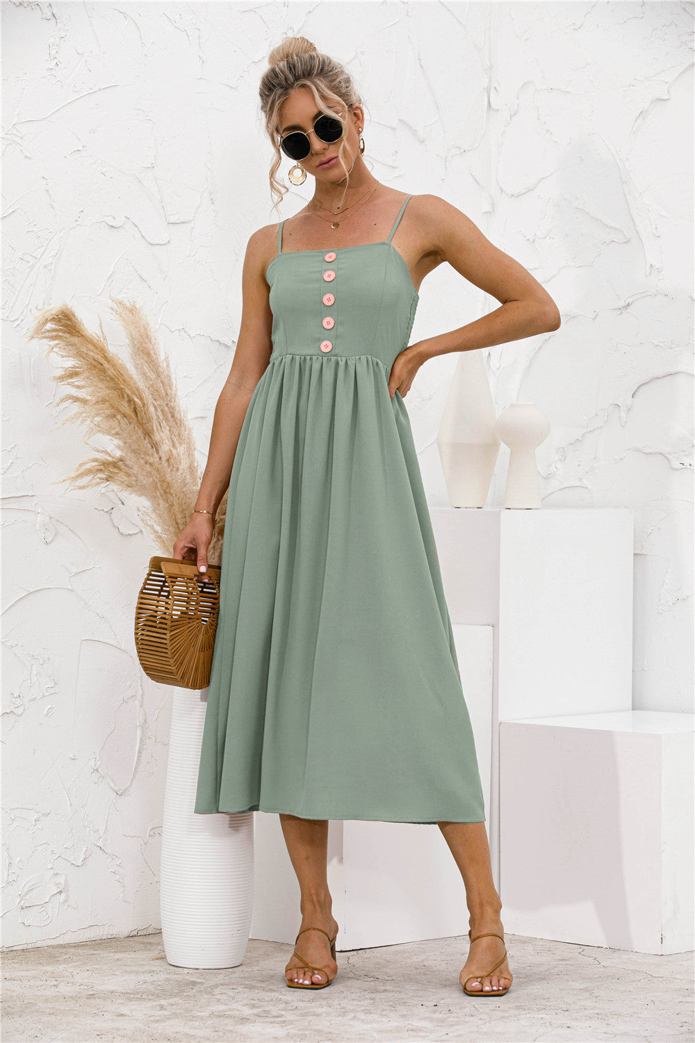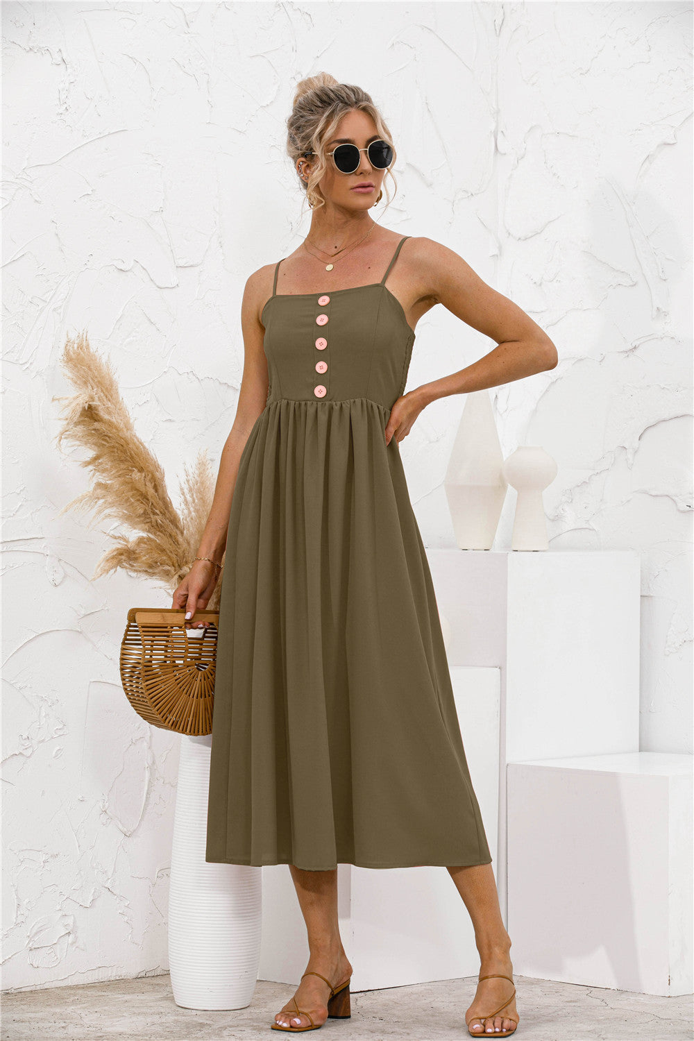 Vibemartini cami midi dress is detailed with a button front. cinched waist that has the ruffle flounce flare out. and adjustable camisole dress. Made with 100% soft polyester that's light and breathable for casual wear at home or outside on sunny days. The below knee long dress is fantastic when paired with your favorite clutch and sandals. With all the amazing bright colors easily pair this dress with your heels or sandals and your best summer accessories.