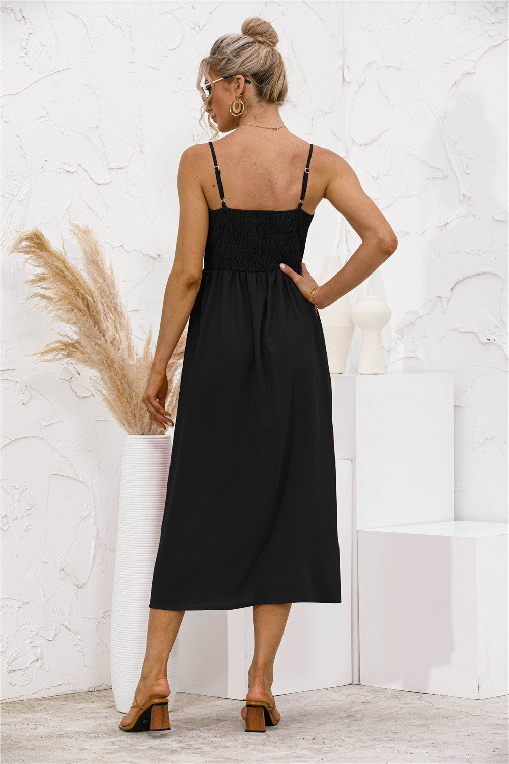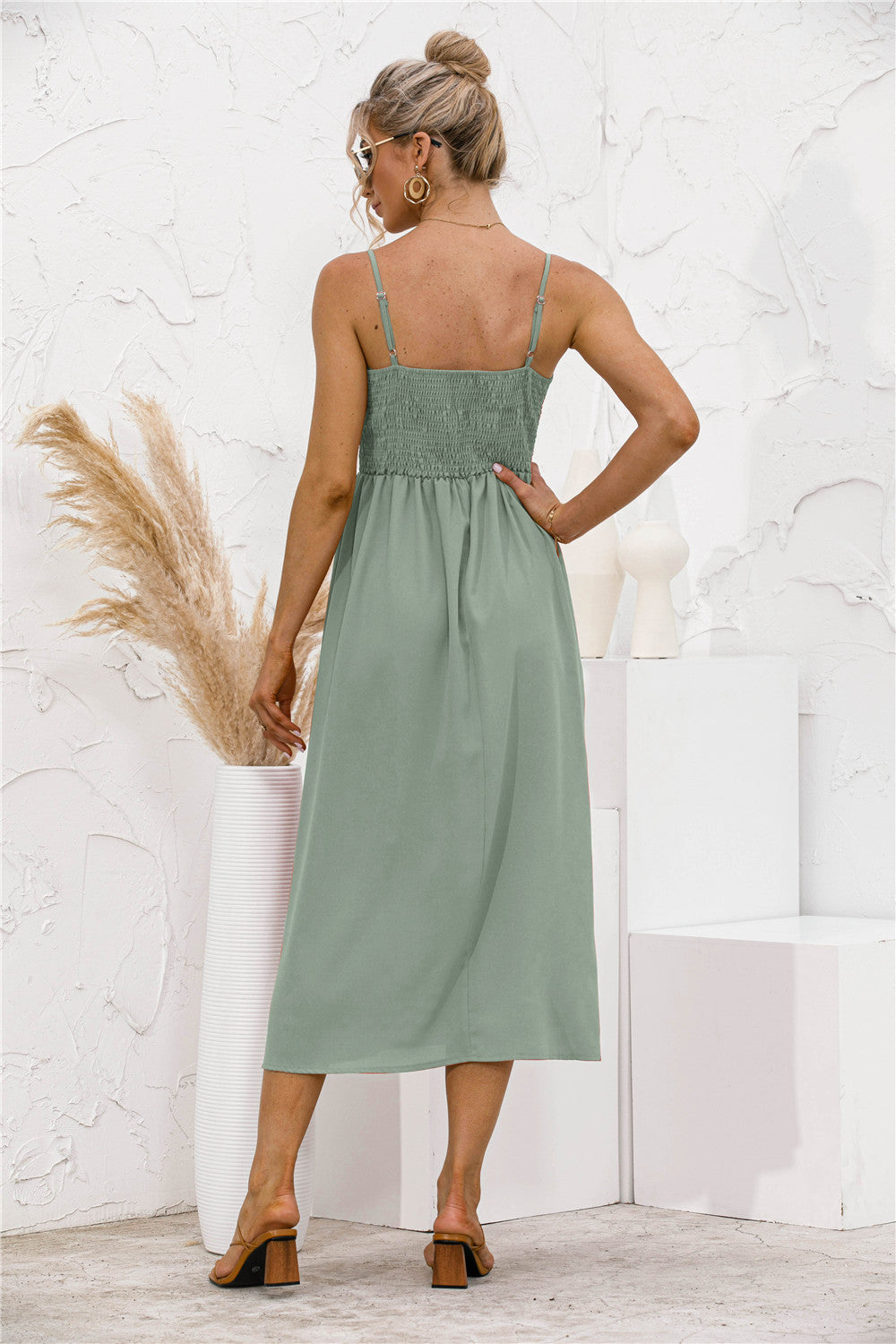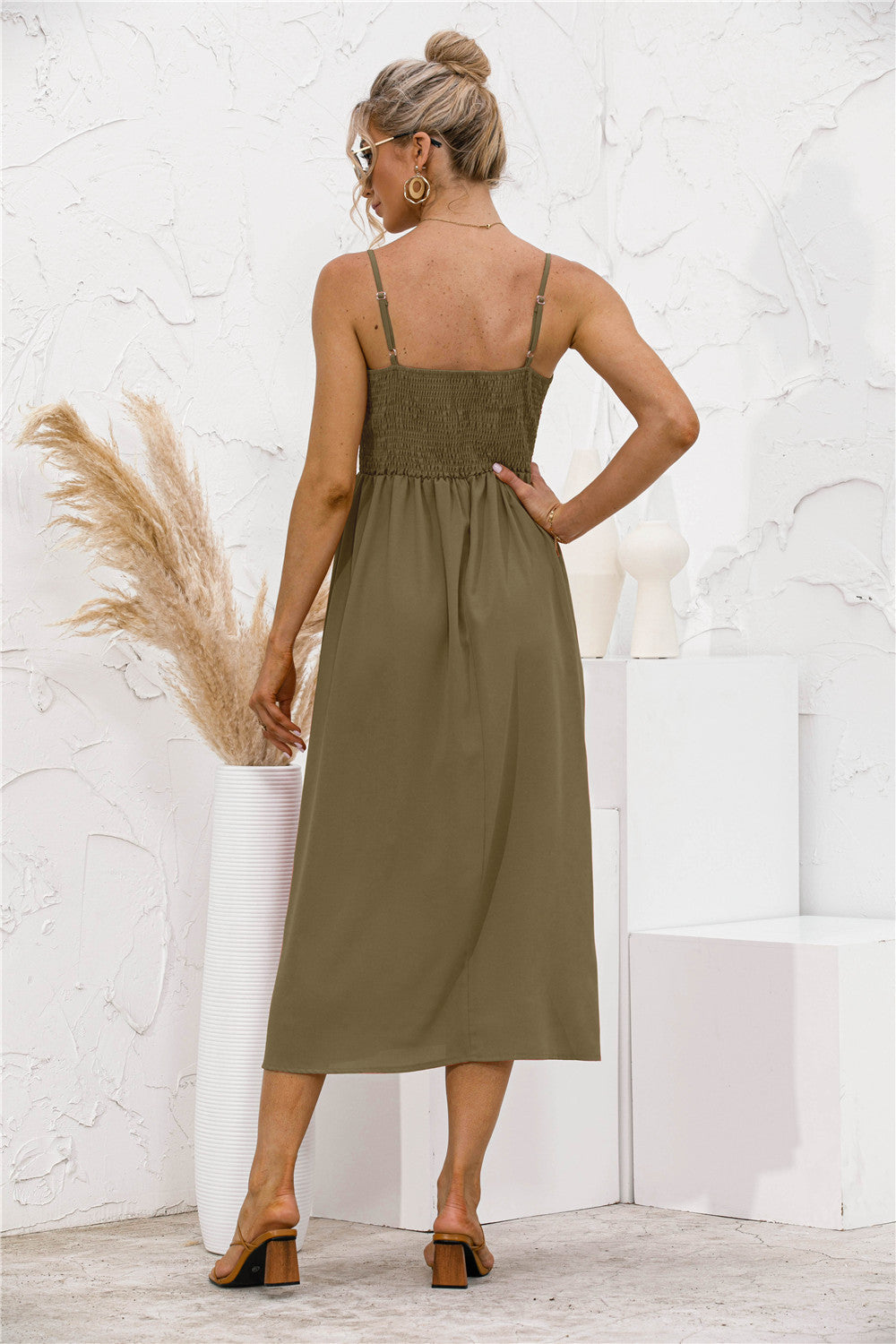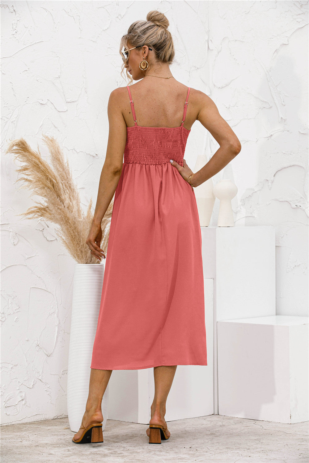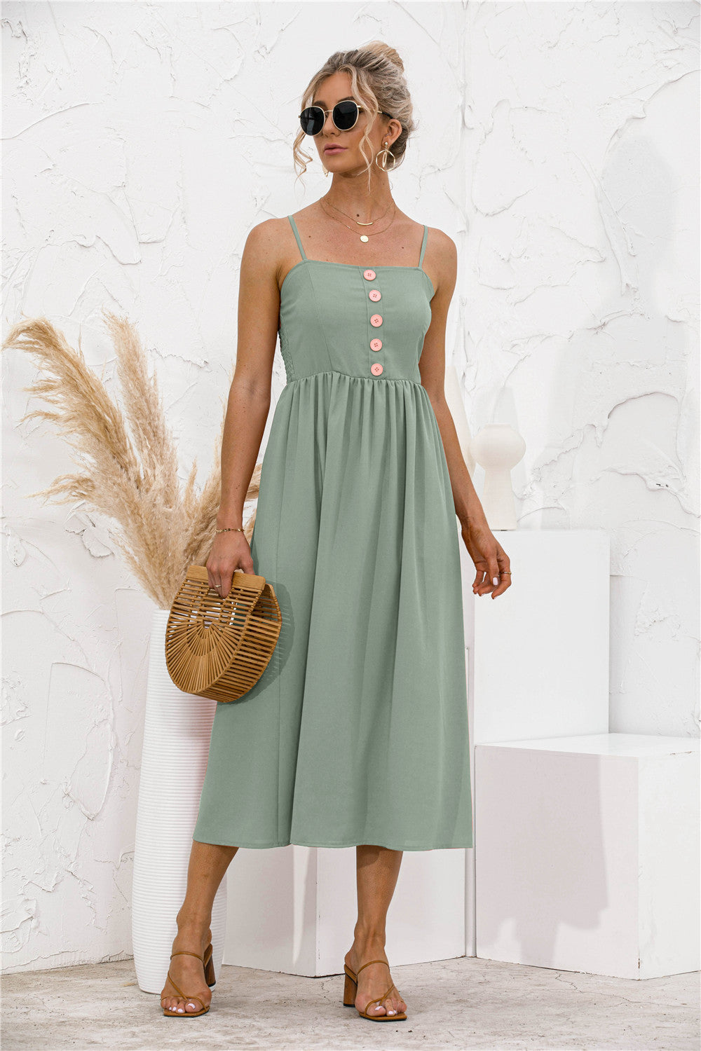 Vibemartini cami midi dress is detailed with a button front. cinched waist that has the ruffle flounce flare out. and adjustable camisole dress. Made with 100% soft polyester that's light and breathable for casual wear at home or outside on sunny days. The below knee long dress is fantastic when paired with your favorite clutch and sandals. With all the amazing bright colors easily pair this dress with your heels or sandals and your best summer accessories.