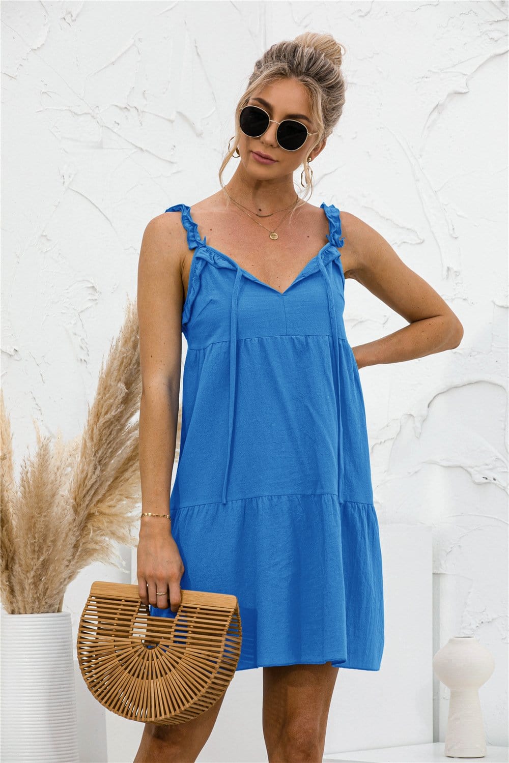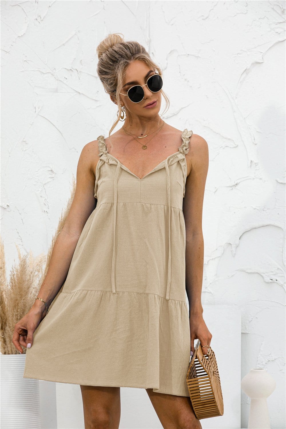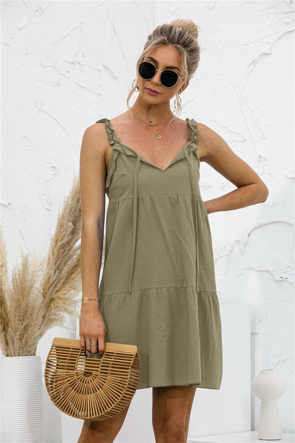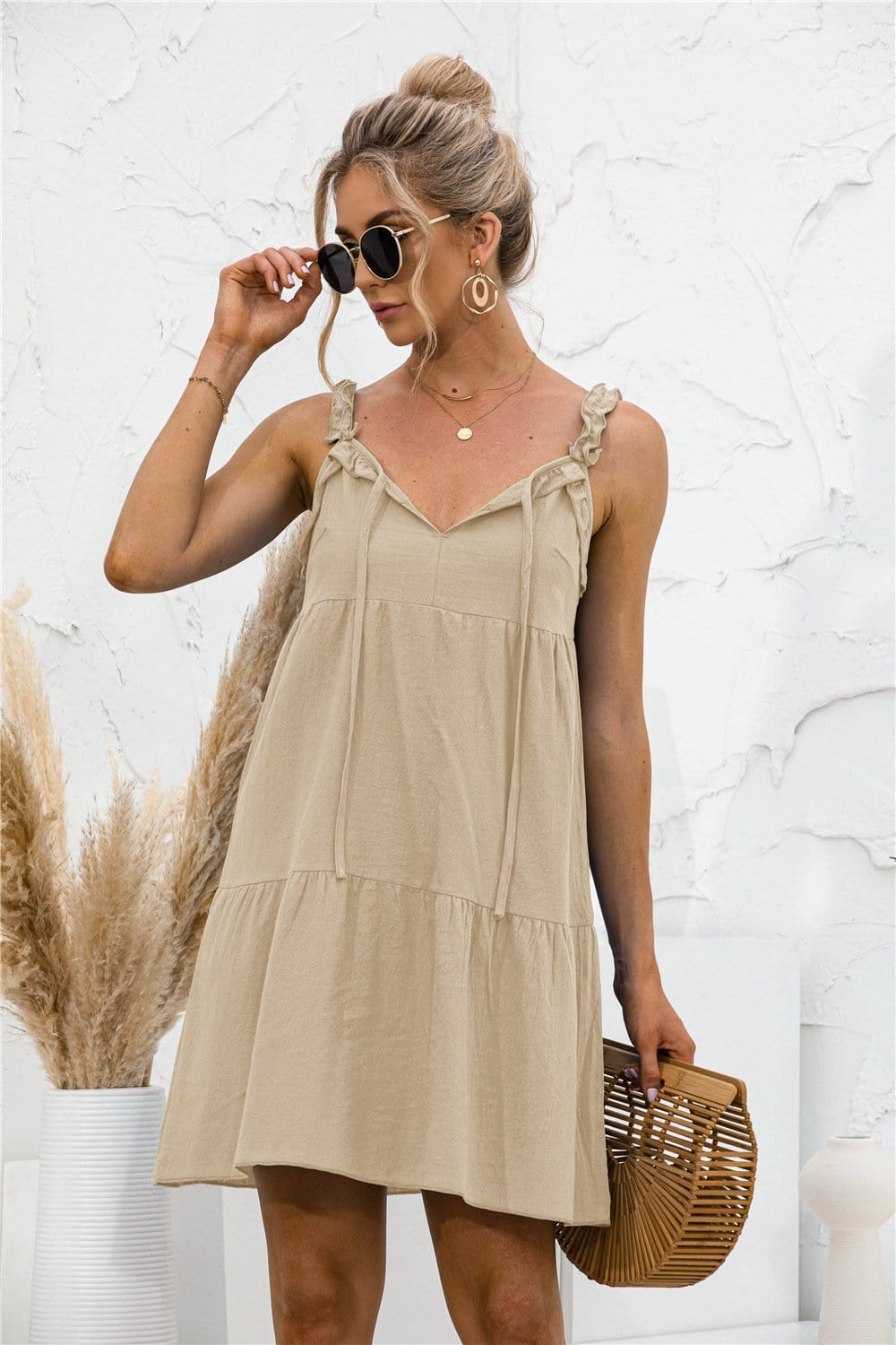Tie Ruffle Tunic Dress