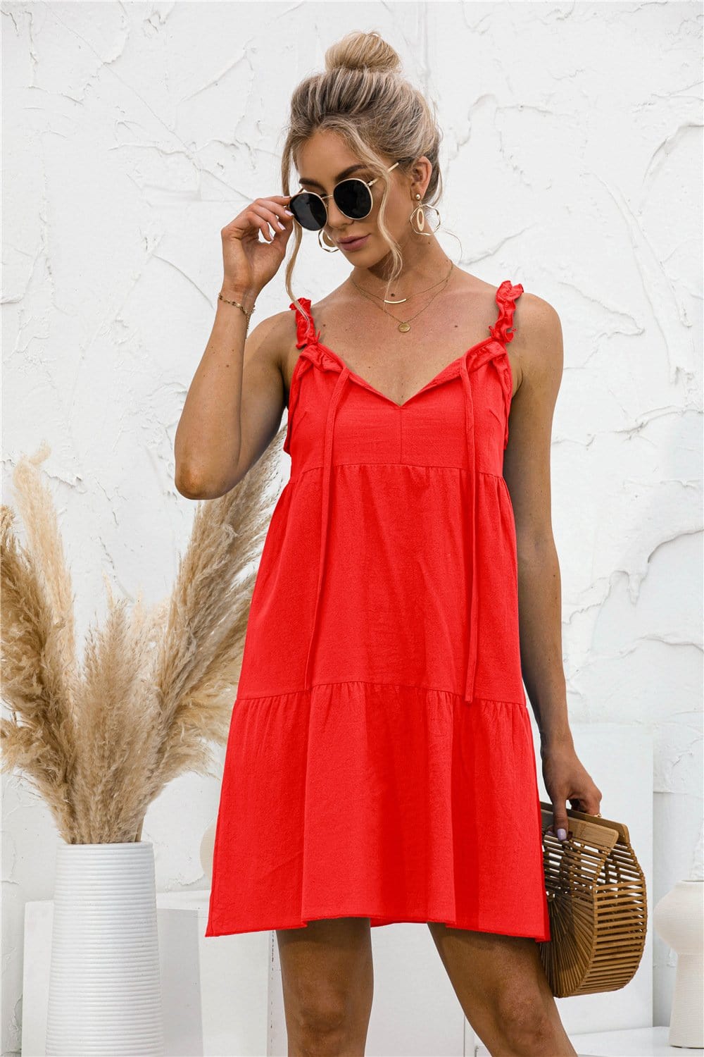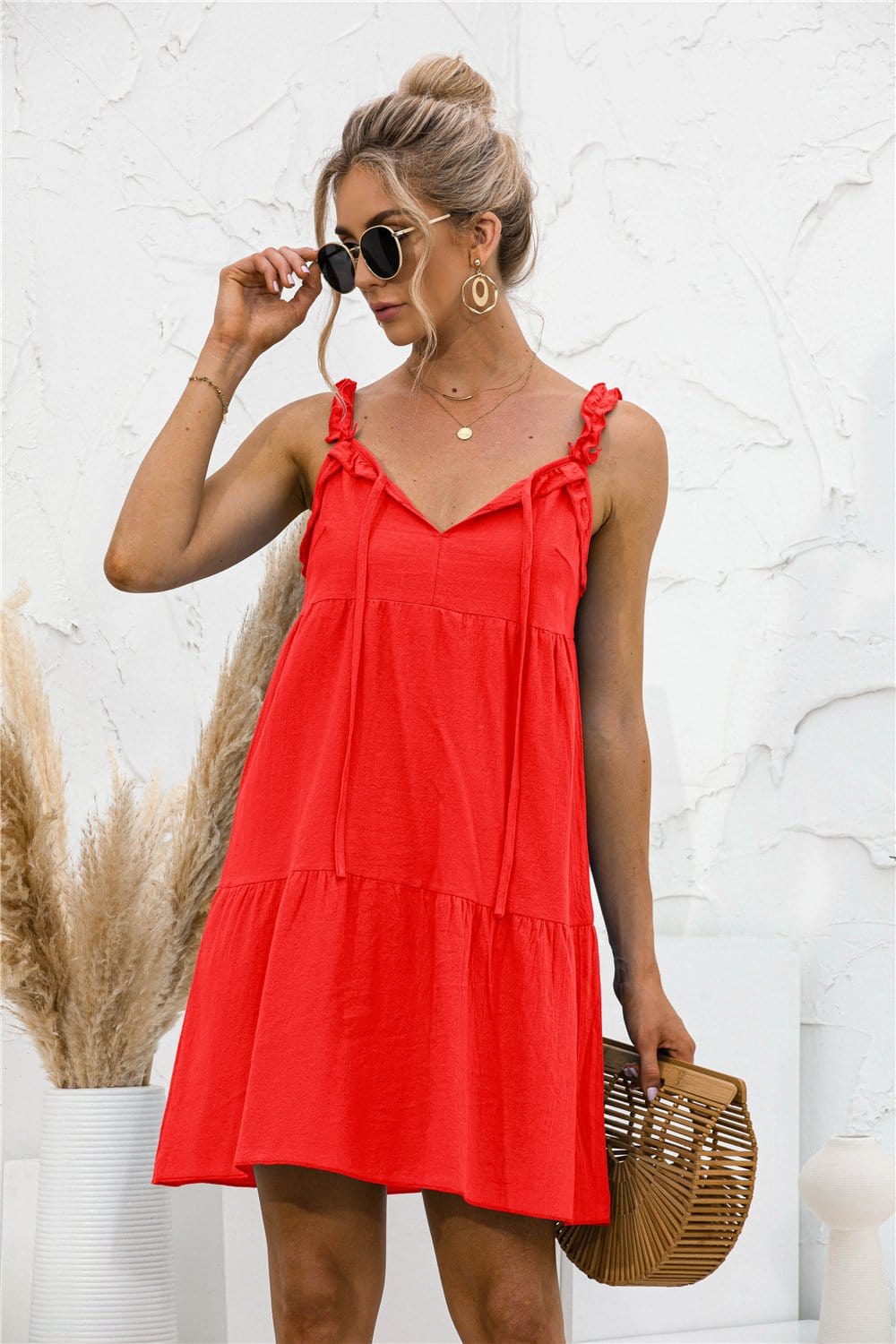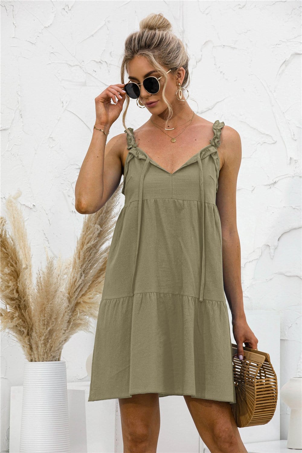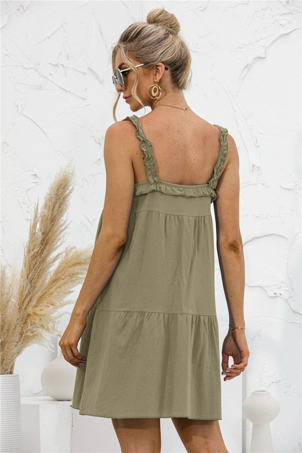 Tie Ruffle Tunic Dress