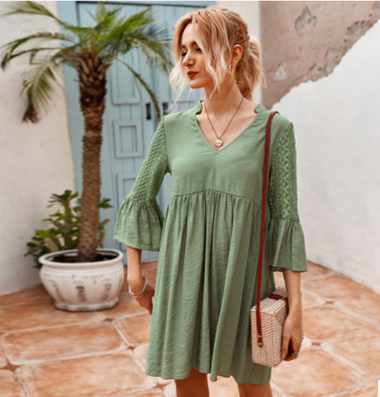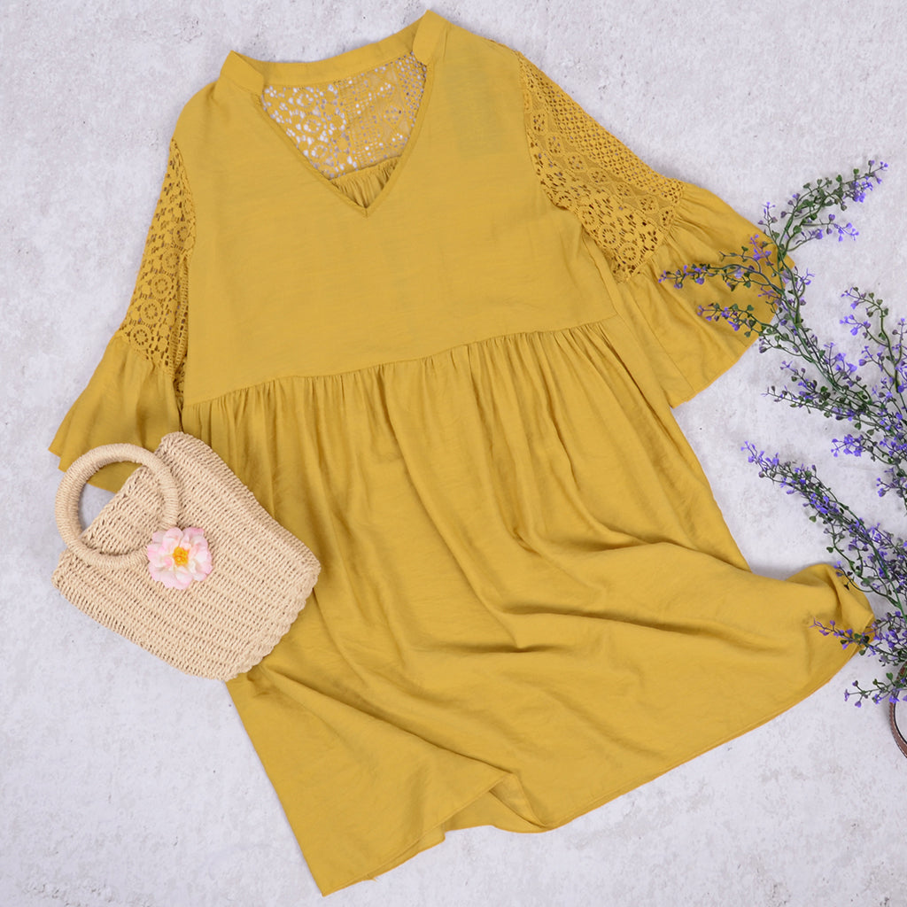 This spring tunic ruffle dress is perfect to dress up or down depending on your day! Detailed with a cross textured shoulder and upper back line. the swing dress is both chic and elegant for any occasion. The short sleeve dress is designed with a cute. slightly protruding popped collar hemmed on a v ineck neckline. With all the amazing bright colors easily pair this dress with your heels or sandals and your best spring accessories.