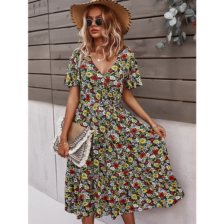 This soft floral dress and fall are a match made in heaven! This fall knee-length button dress is perfect to dress up or down depending on your day. Easily pair this dress with your favorite knee-high suede boots. fall cardigan. and fall accessories.