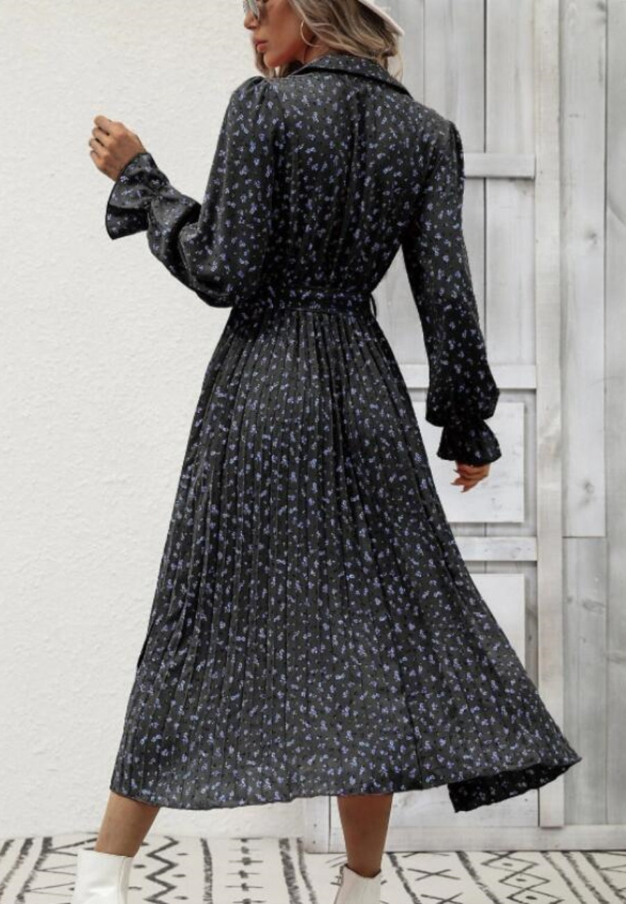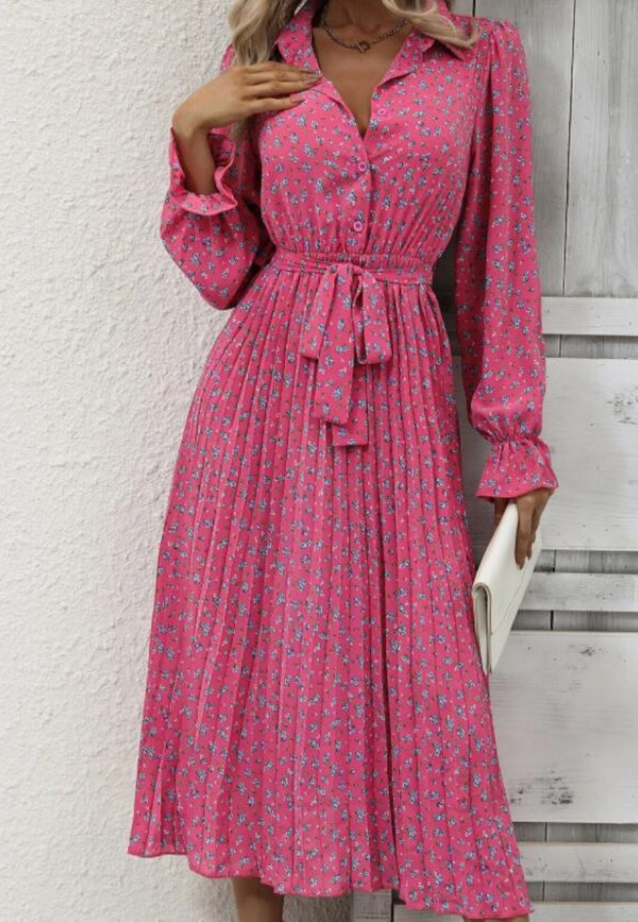 Floral Collared Pleated Dress