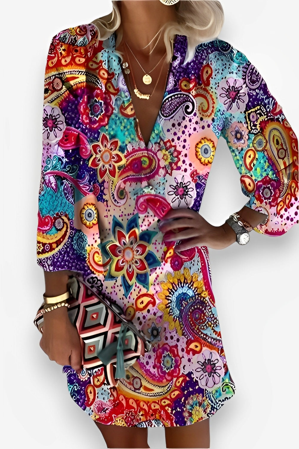 Unleash your daring side with our Deep V-Neck Button Mini Dress. The plunging neckline and button details make for a bold and sassy look, perfect for those who love to take risks. This mini dress will have you feeling confident and ready for any adventure!