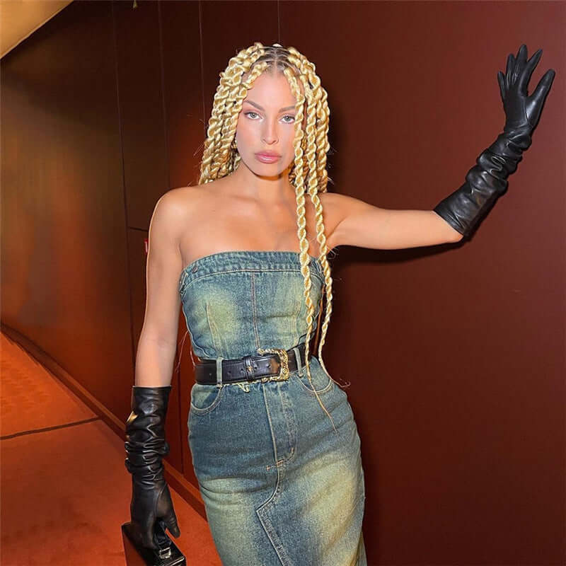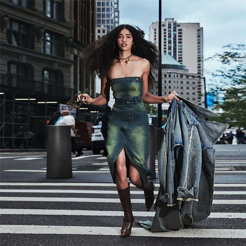 This American slim fit navel strap tube dress is crafted from premium denim fabric, designed to provide a comfortable fit that contours to your body for maximum comfort. The navel strap is adjustable for a personalized fit, with the flexibility to to move with you. This dress is incredibly versatile, making it great for any occasion.