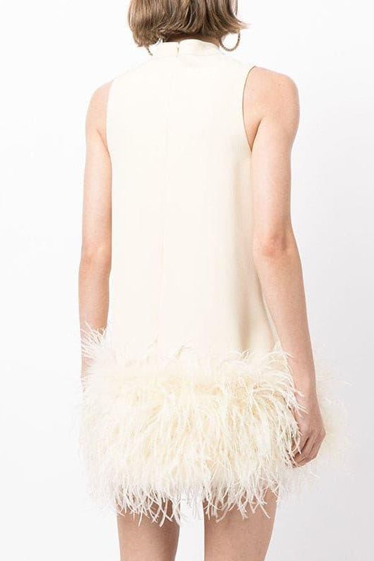 This elegant mini dress features a chic high collar and is made from soft, apricot-hued jersey fabric. The smooth and lightweight fabric allows air to pass through while still providing warmth and comfort. The design of the dress highlights its modern aesthetic, giving you a stylish look without compromising on comfort.