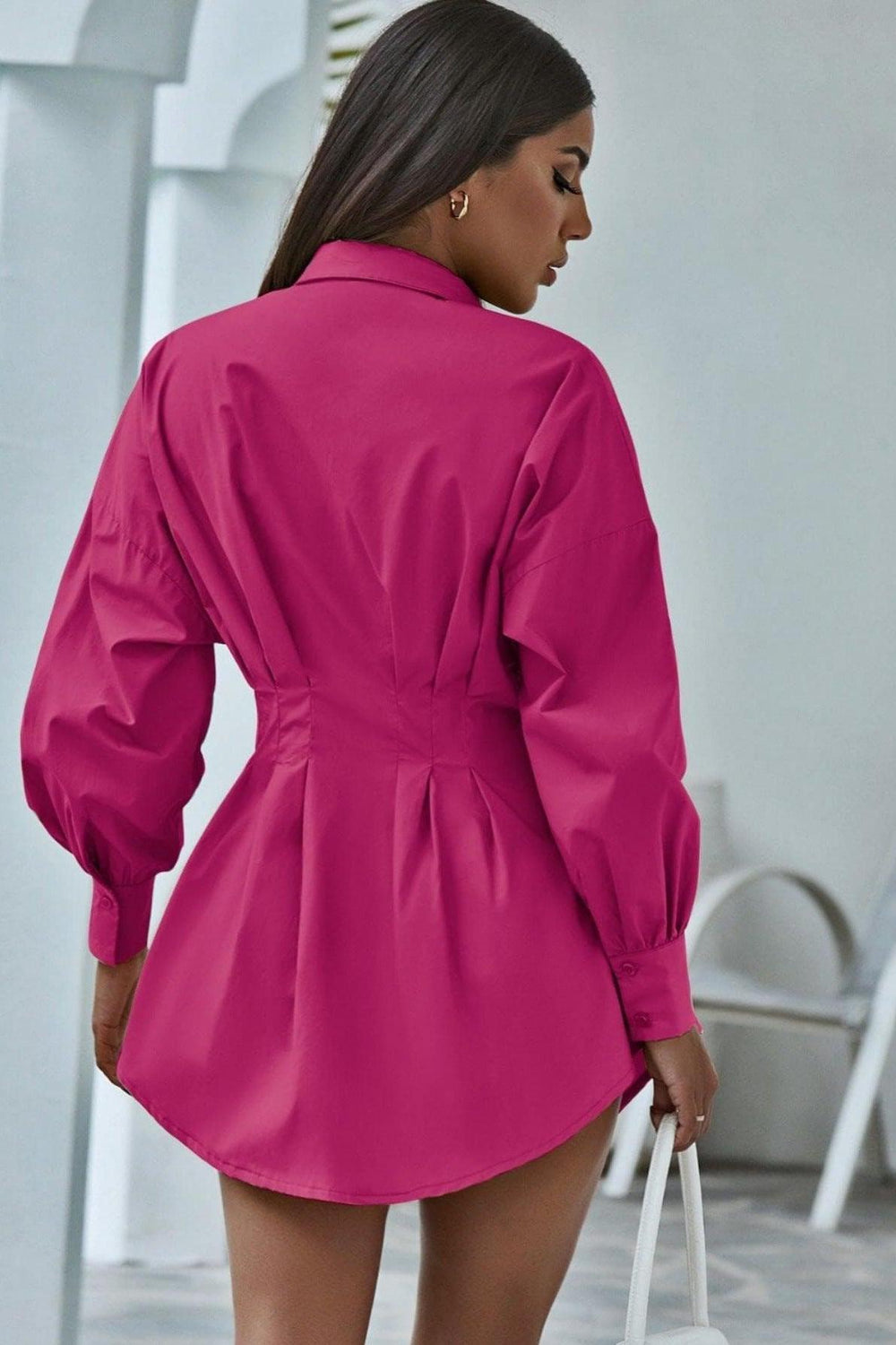 This stylish dress is made of a lightweight, airy linen blend fabric, perfect for staying cool in warm weather. Featuring a pleated skirt, an adjustable drawstring waist, and a spread collar, this timeless style will become a wardrobe staple. The adjustable waist allows for a perfect fit, and the pleated skirt creates a flattering silhouette. Wear it with sneakers for a casual look, or dress it up with heels for a night out.