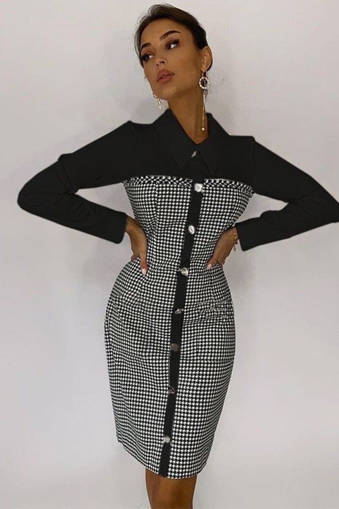 This stylish and comfortable Print Plaid Stitching Shirt Dress is made of lightweight and durable fabric. It features a flattering fit and modern silhouette along with an adjustable drawstring waist finish. It also includes two pockets and a unique stitching detail. Perfect for a chic work wardrobe or a casual weekend look.