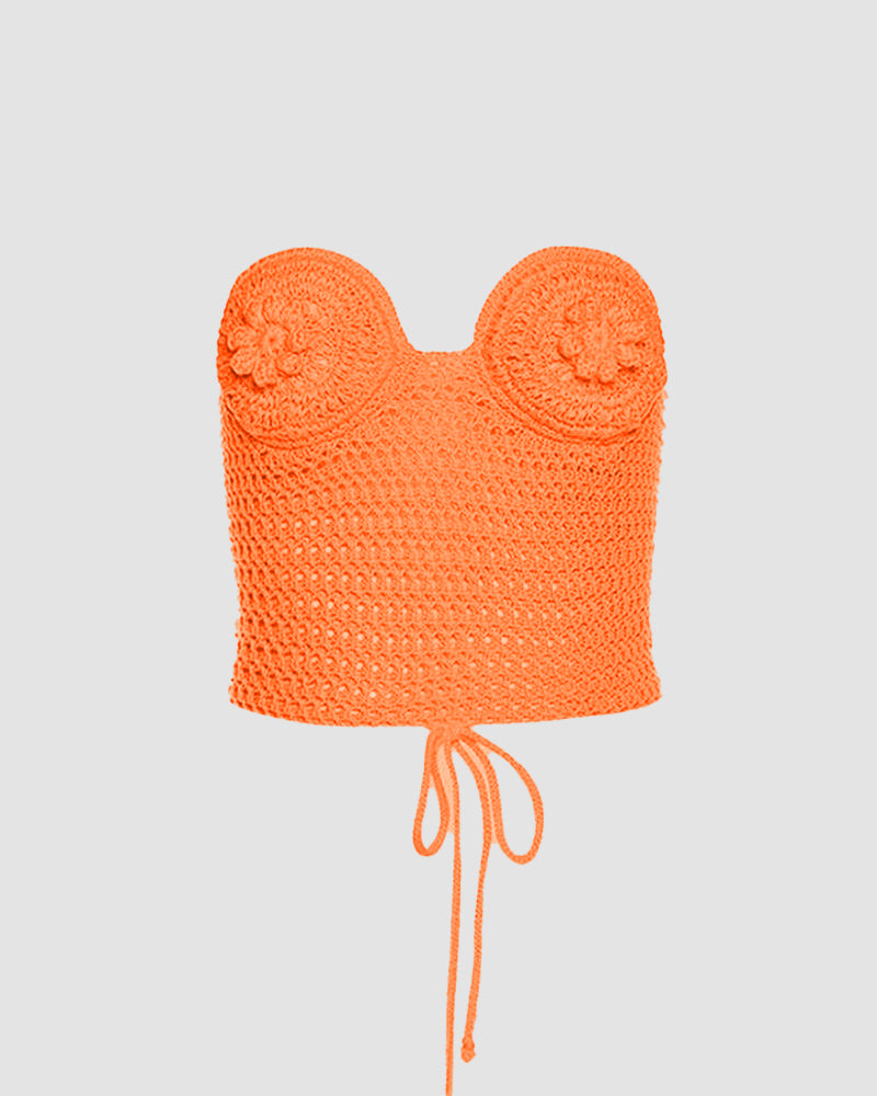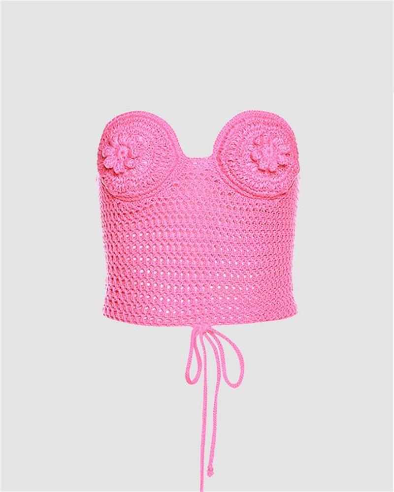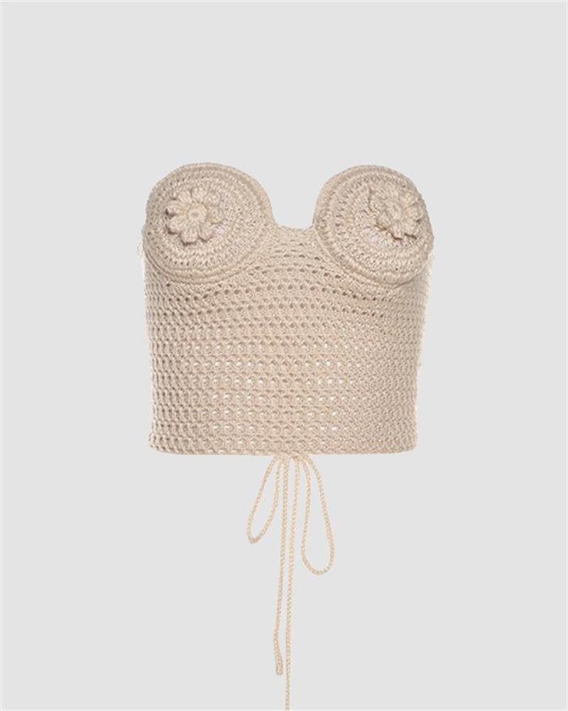 Details: Crochet tube top with flowers design
